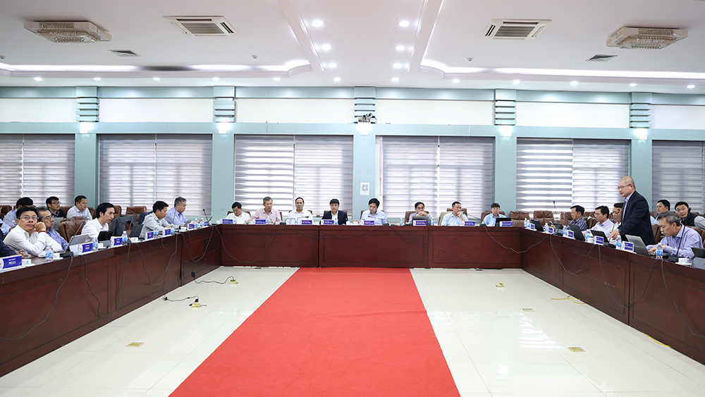 The meeting was attended and directed by Mr. Nguyễn Tuấn Tùng – Chairman of the Board of Members of EVNNPT, Mr. Trương Hữu Thành – General Director of EVNNPT presided the meeting. Also present were Mr. Vũ Hồng Nguyên – Permanent Deputy Secretary of the Party Committee, members of the Board of Members Mr. Đỗ Đức Hùng, Mr. Trần Đăng Khoa, and Deputy General Directors Mr. Lưu Việt Tiến, Mr. Bùi Văn Kiên, Mr. Nguyễn Ngọc Tân, Mr. Hoàng Văn Tuyên, as well as leaders from the Northern and Central Project Management Boards (NPMB, CPMB), industry consultancy units, and EVNNPT’s professional departments.