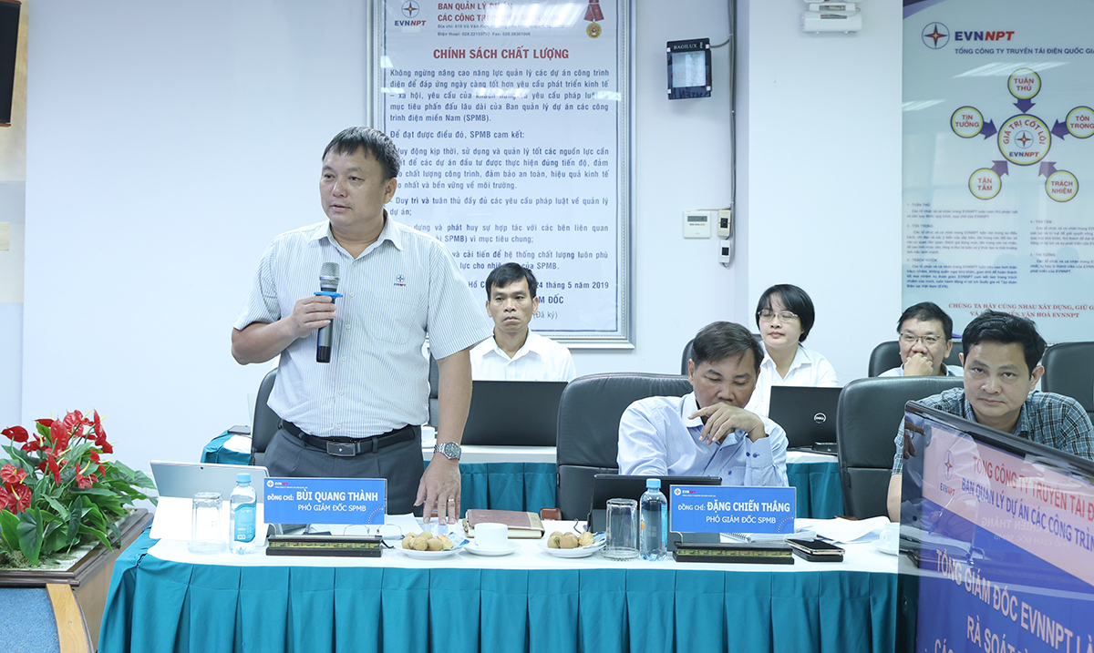 Lãnh đạo EVNNPT cũng yêu cầu các ban tham mưu của Tổng công ty tiếp tục phối hợp chặt chẽ với SPMB, chủ động tham mưu, đề xuất giải pháp xử lý kịp thời các khó khăn phát sinh, góp phần đẩy nhanh tiến độ dự án theo kế hoạch.