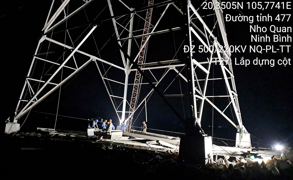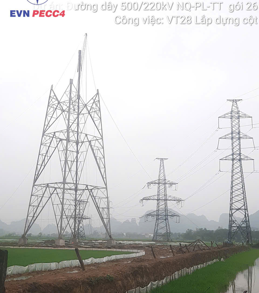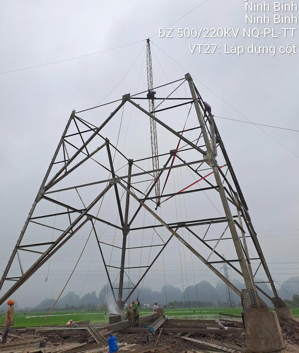 Thi công dựng cột Dự án đường dây 500/220kV Nho Quan – Phủ Lý – Thường Tín