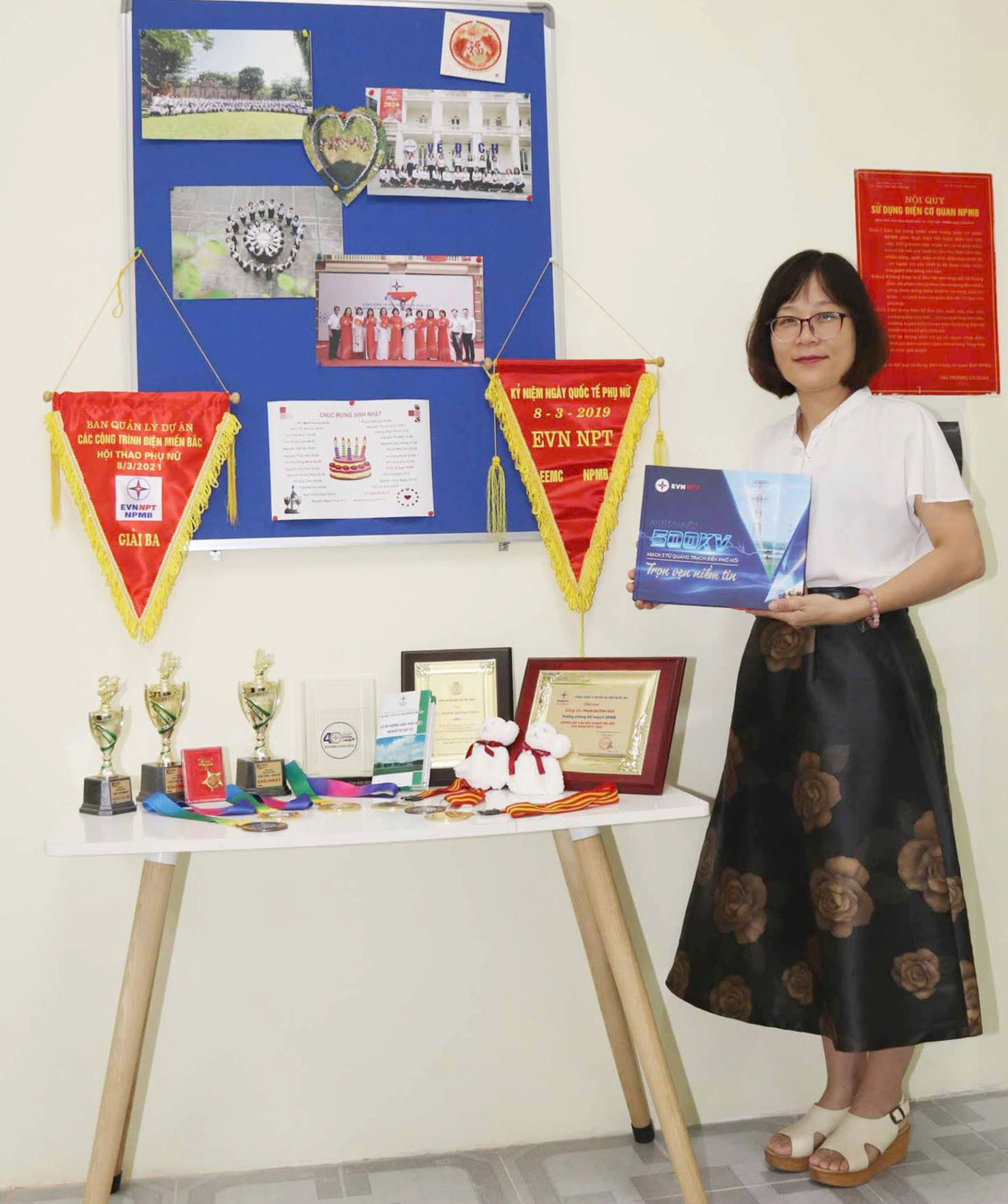 Chặng đường gần 44 năm hình thành, phát triển của NPMB không thể không nhắc đến những đóng góp quan trọng của chị Quỳnh Nga trong 23 năm công tác tại Ban. Quá trình làm việc tại Phòng Vật tư, dưới sự lãnh đạo của chị, Phòng Vật tư trở thành một tập thể đoàn kết, kỷ luật, vững về chuyên môn, mạnh về phong trào, được ghi nhận qua Bằng khen của Bộ Công Thương năm 2018; Giấy khen của BCH Công đoàn EVNNPT năm 2019; 2020…