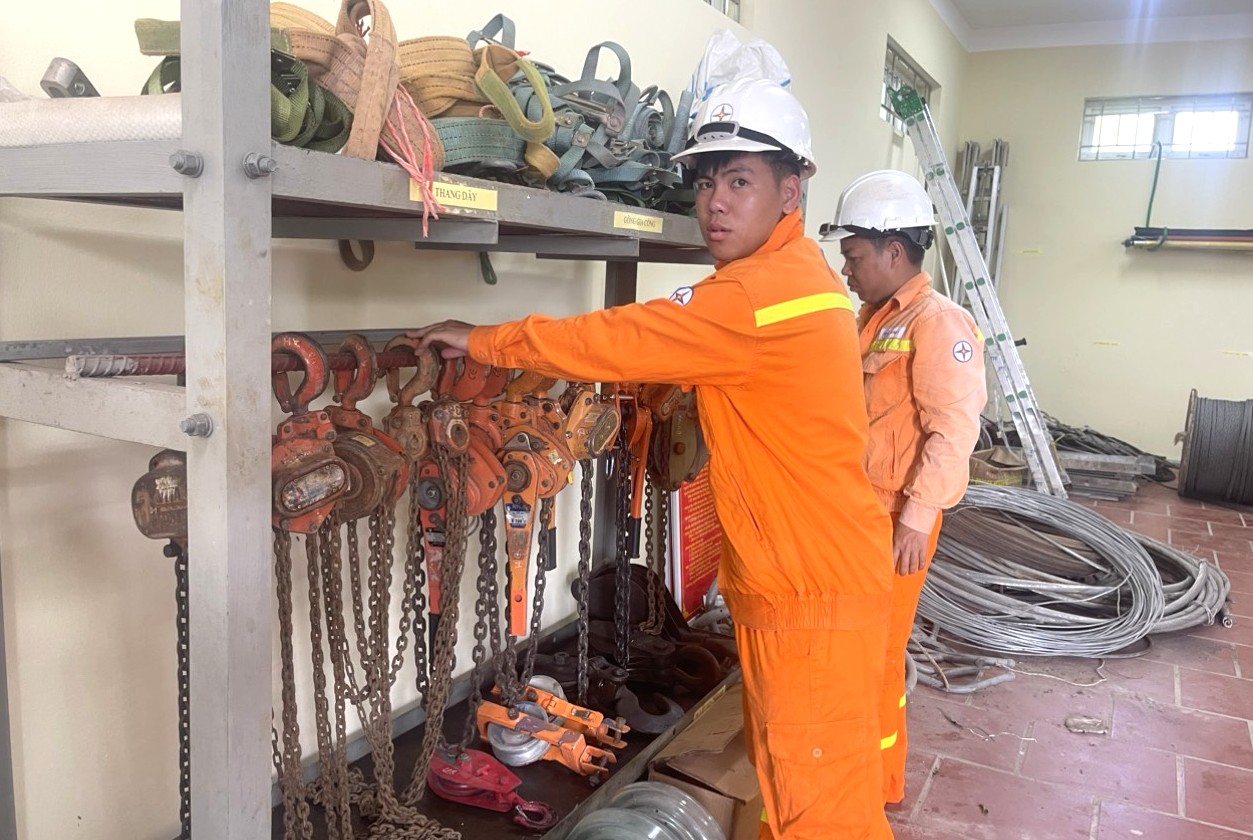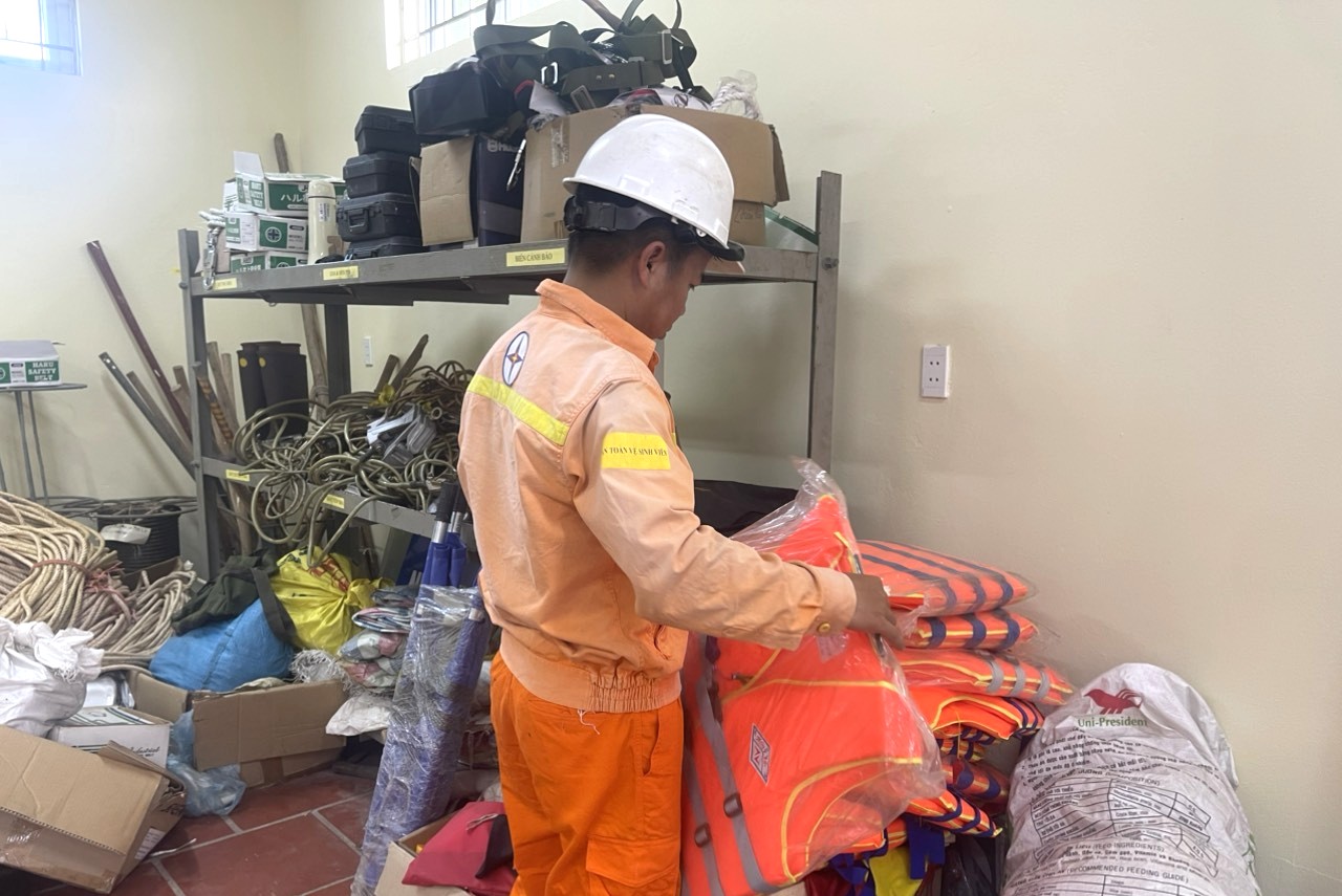 Đội Truyền tải điện Đông Bắc 1 chuẩn bị sẵn sàng vật tư dự phòng để ngay sau bão nếu tác động đến hệ thống truyền tải có thể ra hiện trường xử lý khắc phục ngay