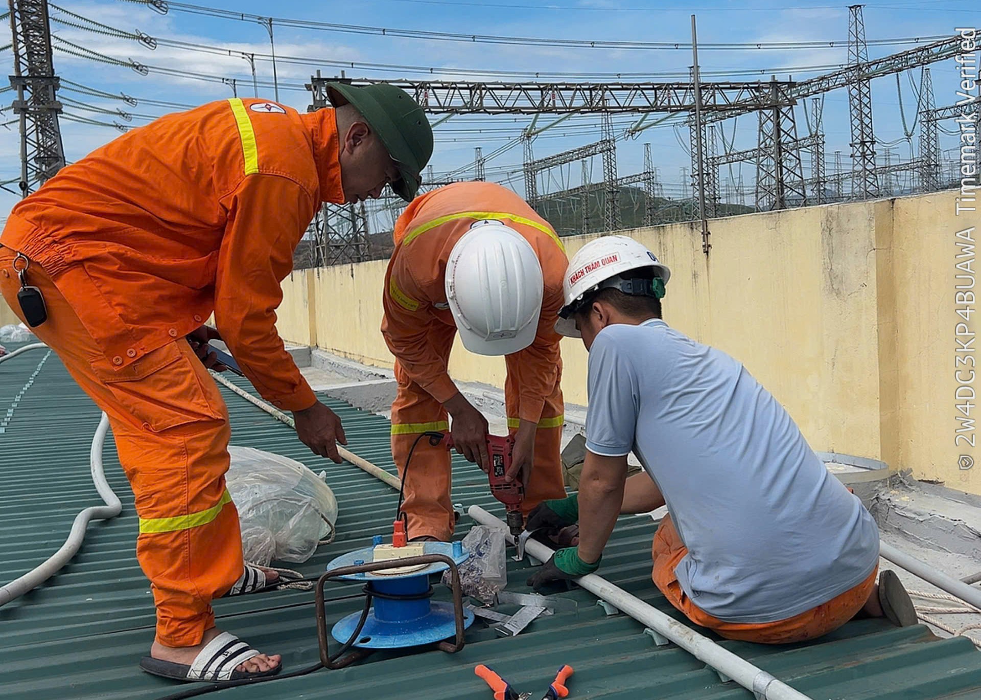 Đội Truyền tải điện Đông Bắc 1 chằng, chống mái tôn tại phòng điều khiển của các trạm biến áp
