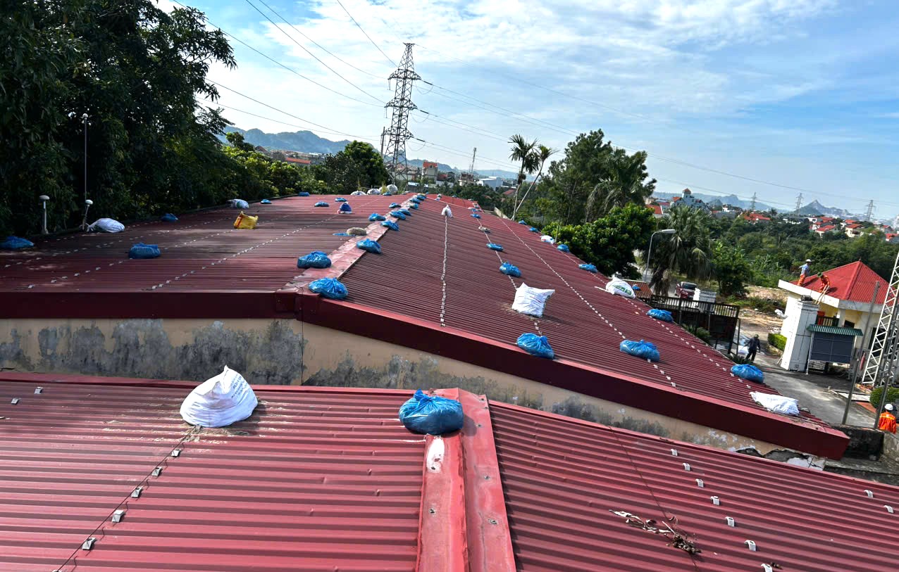 Hệ thống mái tôn đã được đơn vị hoàn thành củng cố trước bão số 11