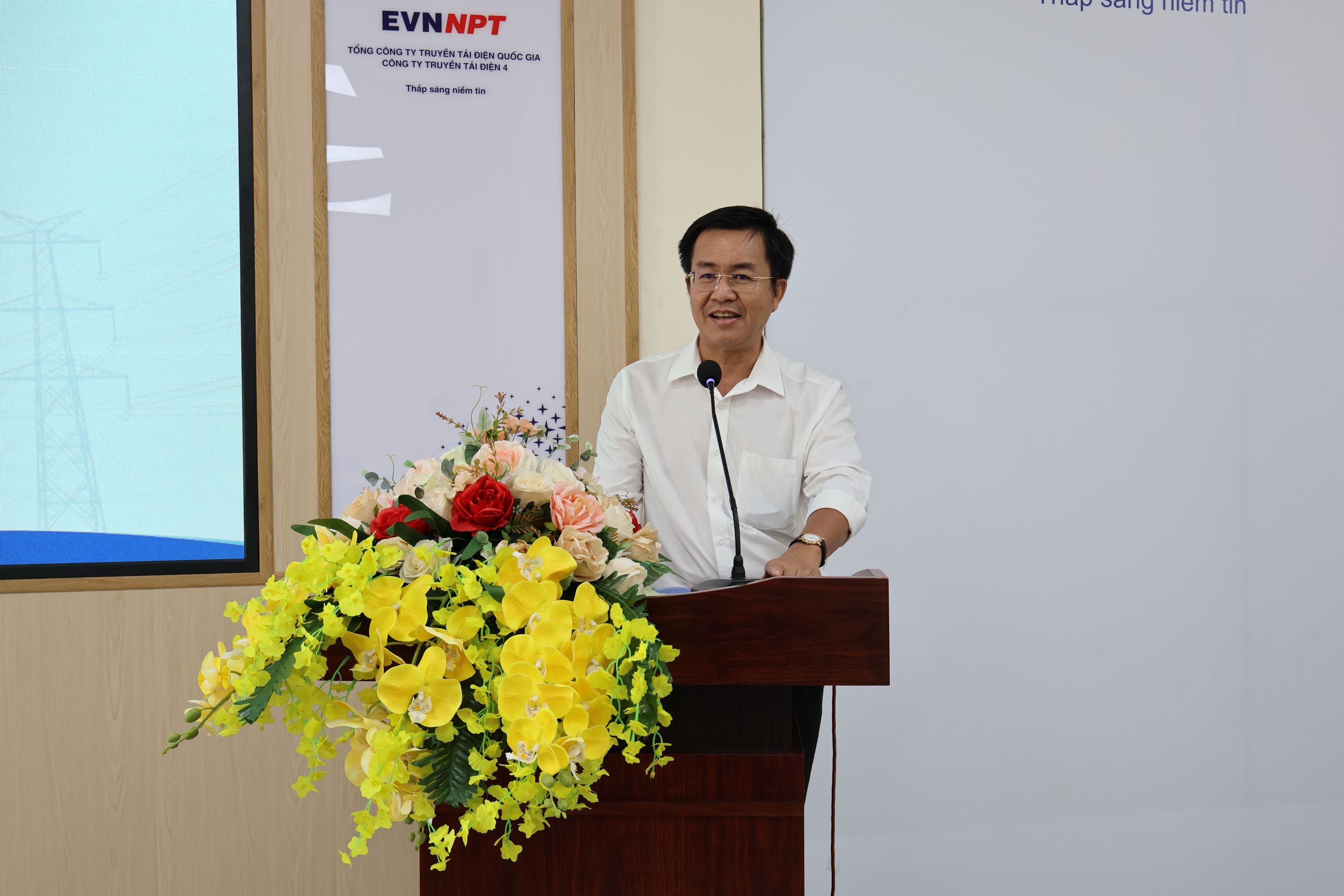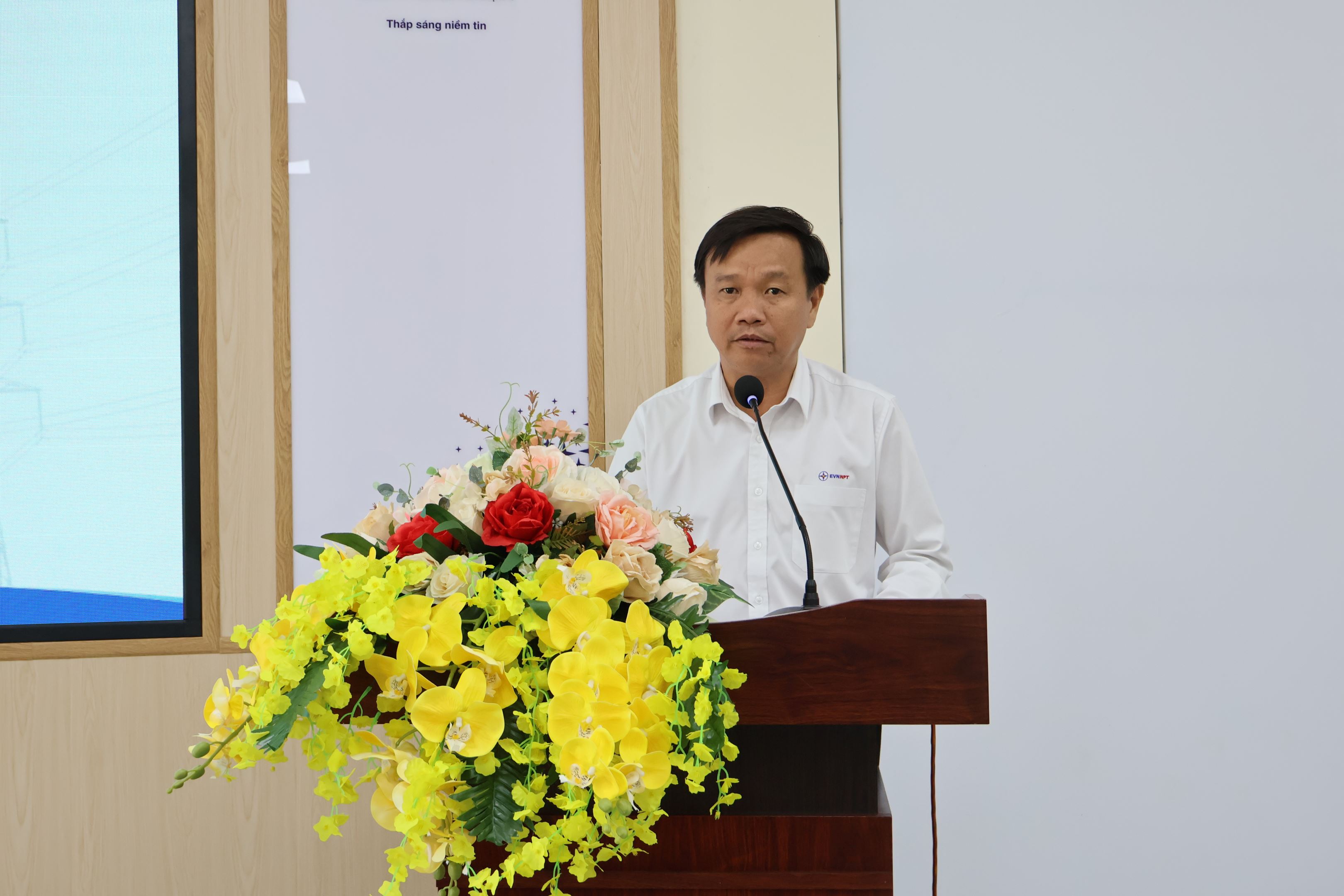 Ông Trần Anh Dũng - Phó Truyền tải điện Tây Ninh trình bày báo cáo tại hội nghị