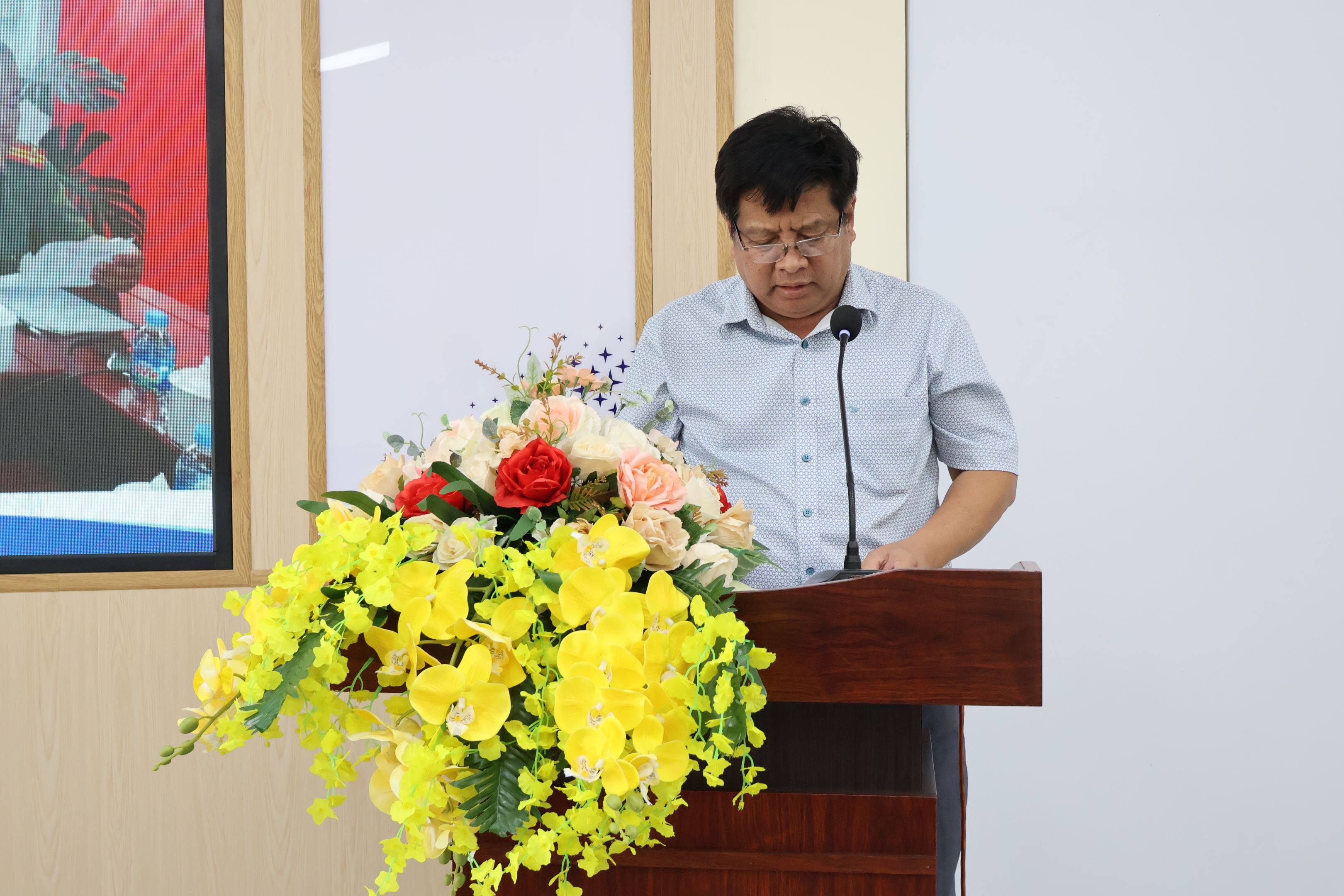 Ông Nguyễn Minh Đạt - Trưởng phòng Kiểm tra, Thanh tra và pháp chế PTC4 phát biểu tại hội nghị