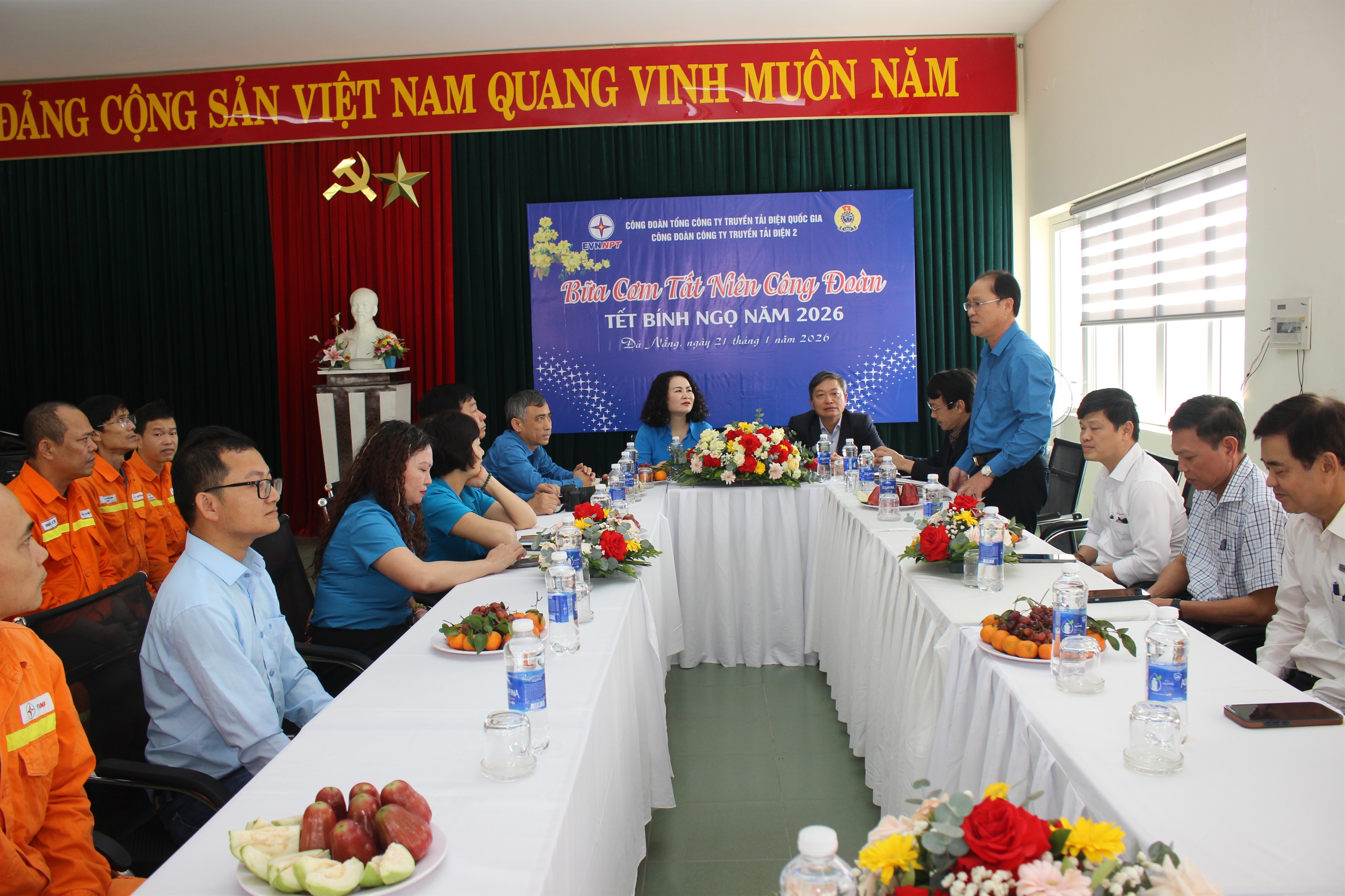 Sau buổi thăm hỏi, Đoàn đã tham gia “Bữa cơm tất niên công đoàn” cùng với người lao động trạm biến áp 500kV Đà Nẵng.