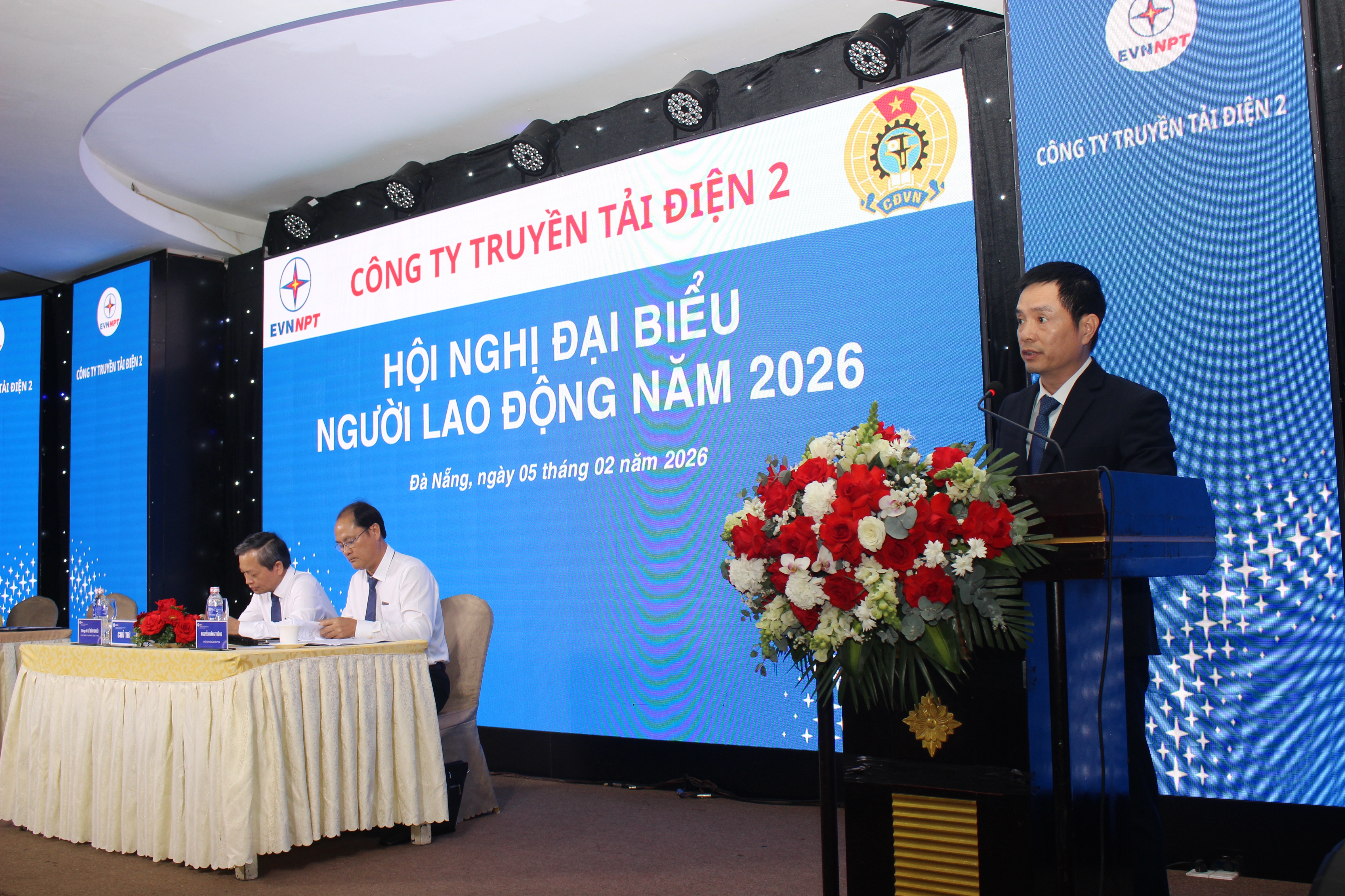 Thay mặt PTC2, ông Lê Tuấn Anh – Phó Giám đốc Công ty báo cáo: Năm 2025, PTC2 đã đảm bảo cung cấp điện cho các tỉnh miền trung và góp phần đảm bảo an ninh năng lượng quốc gia. Sản lượng truyền tải đạt hơn 9,729 tỷ kWh (100,8%); đạt 6/6 chỉ tiêu suất sự cố; hoàn thành 100% khối lượng thí nghiệm định kỳ; công tác đầu tư xây dựng PTC2 đã thực hiện cao hơn khối lượng kế hoạch giao. Phối hợp với các đơn vị bạn tiếp nhận vận hành đường dây 500kV Monsoon – Thạnh Mỹ (phía Việt Nam) và Trạm biến áp 500kV Quảng Trị.