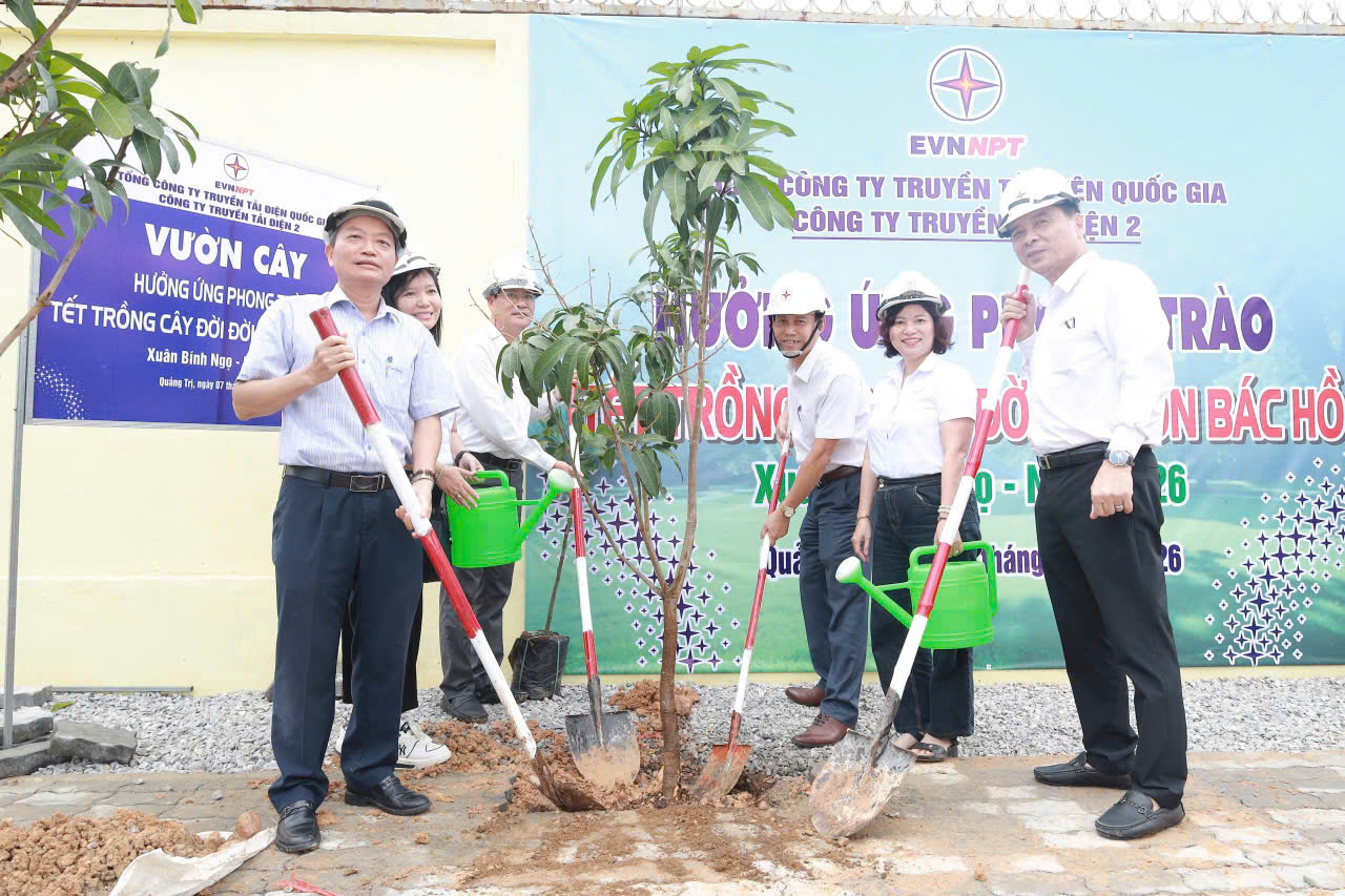Trạm biến áp 500kV Quảng Trị được đóng điện vận hành cuối năm 2025, là đơn vị mới của TTĐ Quảng Trị,mặt bằng ngoài khu vực đặt thiết bị xung quanh hàng rào còn trống cần phủ bóng cây xanh. Thực hiện chỉ đạo của Công đoàn Tổng công ty Truyền tải điện Quốc gia (EVNNPT) và PTC2 về việc tổ chức "Tết trồng cây đời đời nhớ ơn Bác Hồ" Xuân Bính Ngọ năm 2026 tiếp tục hưởng ứng phong trào “Tết trồng cây” theo Chỉ thị số 45/CT-TTg ngày 31/12/2020 của Thủ tướng Chính phủ."Tết trồng cây đời đời nhớ ơn Bác Hồ" Xuân Bính Ngọ năm 2026.