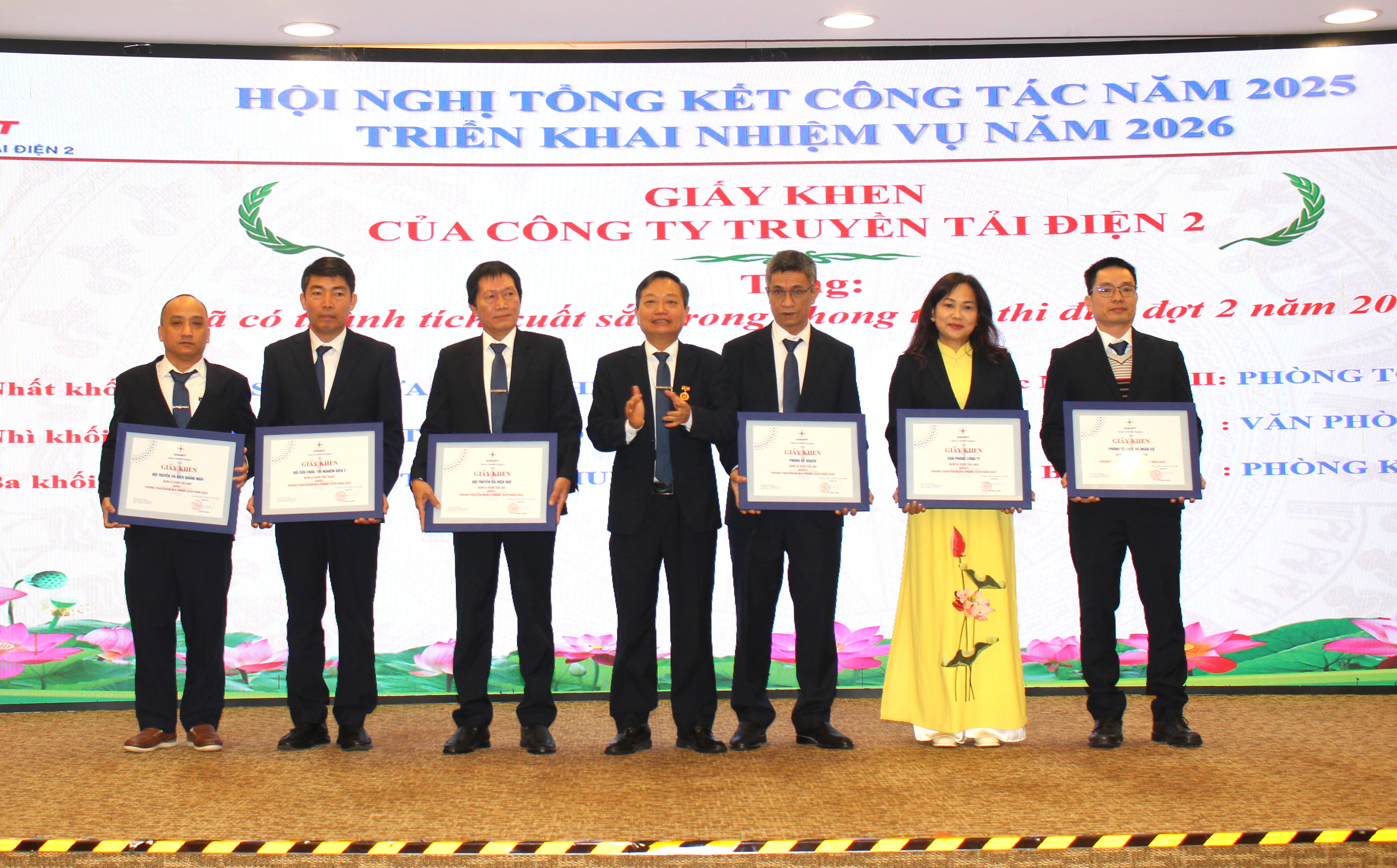 Ông Lê Đình Chiến – Bí thư Đảng ủy, Giám đốc PTC2 tặng giấy khen cho các tập thể và cá nhân đạt thành tích năm 2025