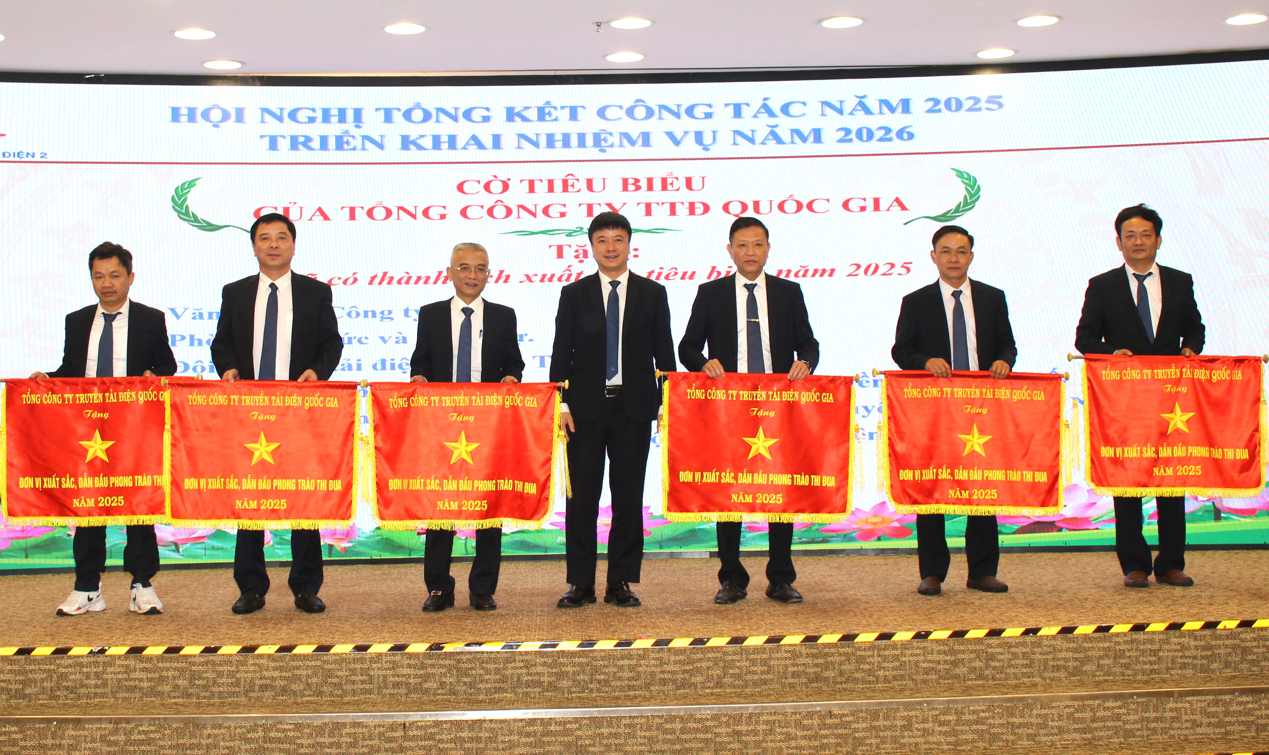 Ông Lưu Việt Tiến - Phó Tổng giám đốc EVNNPT trao Cờ của Tổng công ty cho các tập thể có thành tích xuất sắc tiêu biểu năm 2025.