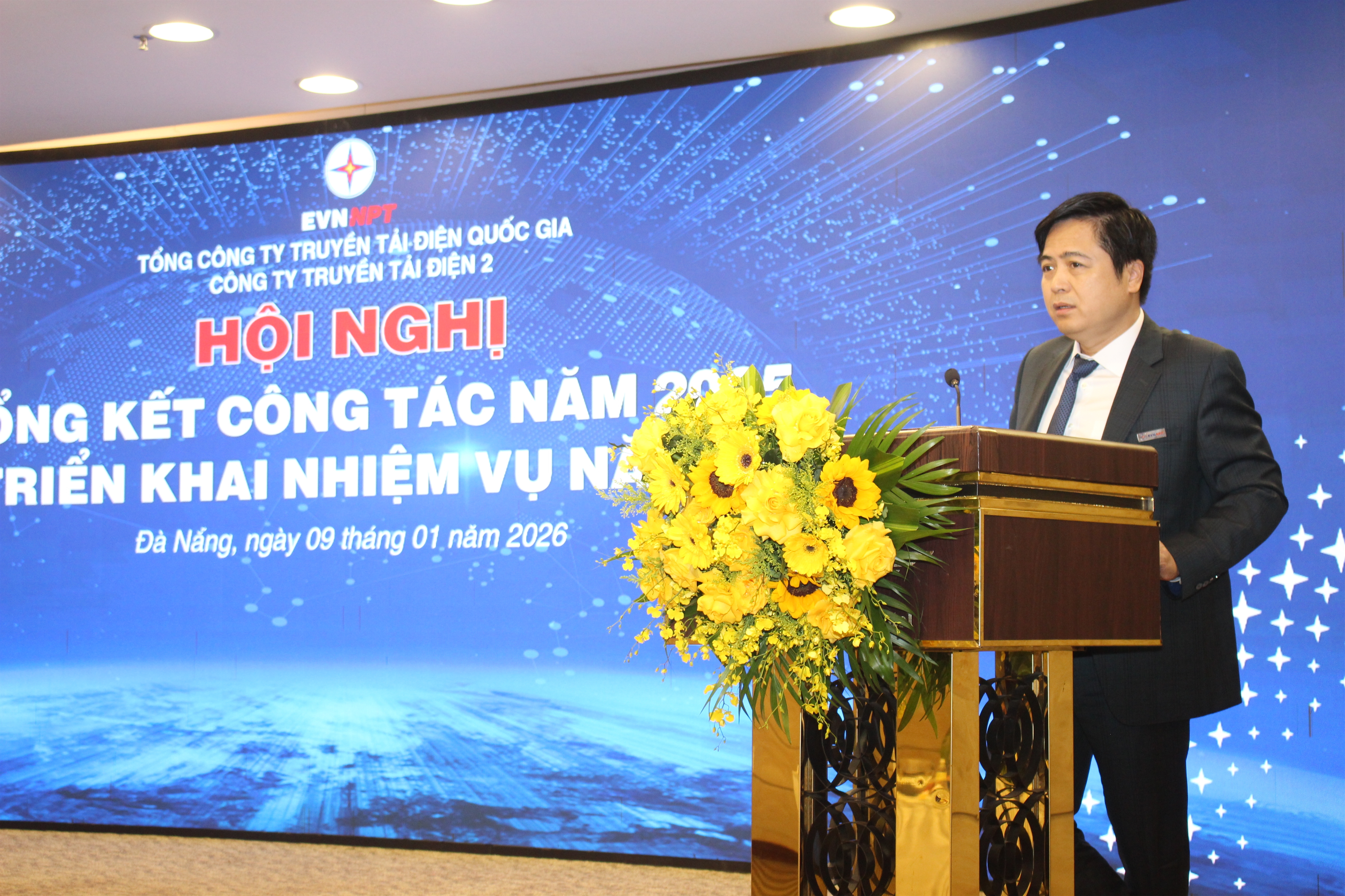 Tại hội nghị ông Trương Hữu Thành – Phó Bí thư Đảng ủy, Quyền Tổng giám đốc EVNNPT đánh giá cao những kết quả PTC2 đạt được trong thời gian qua. PTC2 đã hoàn thành các chỉ tiêu kế hoạch được giao, qua đó góp phần rất quan trọng và hiệu quả trong thành tích chung của EVNNPT. Để thực hiện tốt nhiệm vụ chính trị trong năm 2026, PTC2 cần tập trung thực hiện tốt công tác xây dựng Đảng, chú trọng giáo dục chính trị, tư tưởng và nâng cao chất lượng công tác kiểm tra, giám sát. Đặc biệt, cần làm tốt công tác phát triển, quản lý đảng viên để xây dựng Đảng bộ trong sạch, vững mạnh toàn diện. Triển khai nhiều giải pháp đặc biệt đẩy mạnh nghiên cứu khoa học, ứng dụng trí tuệ nhân tạo (AI) và thiết bị bay không người lái (UAV) trong lĩnh vực truyền tải điện để đảm bảo vận hành lưới điện truyền tải tuyệt đối an toàn, ổn định và tin cậy, bảo đảm an toàn lao động, giảm thiểu sự cố và giảm tỷ lệ điện dung cho truyền tải. Bên cạnh đó PTC2 cần phối hợp với các ban, các đơn vị trong EVNNPT, hỗ trợ đôn đốc các nhà thầu thực hiện tốt công tác đầu tư xây dựng. Tiếp tục cải thiện môi trường, điều kiện làm việc cho CBCNV; thực hiện đầy đủ các chế độ, chính sách có liên quan trực tiếp đến CBCNV. Đảm bảo việc làm, thu nhập và chế độ phúc lợi cho người lao động. Ông Trương Hữu Thành bày tỏ sự tin tưởng rằng, với bề dày truyền thống đoàn kết, tận tâm và trách nhiệm, tập thể PTC2 sẽ hoàn thành và vượt các chỉ tiêu được giao trong năm 2026, góp phần quan trọng cùng EVNNPT thực hiện thắng lợi mọi nhiệm vụ mà Tập đoàn Điện lực Việt Nam giao.