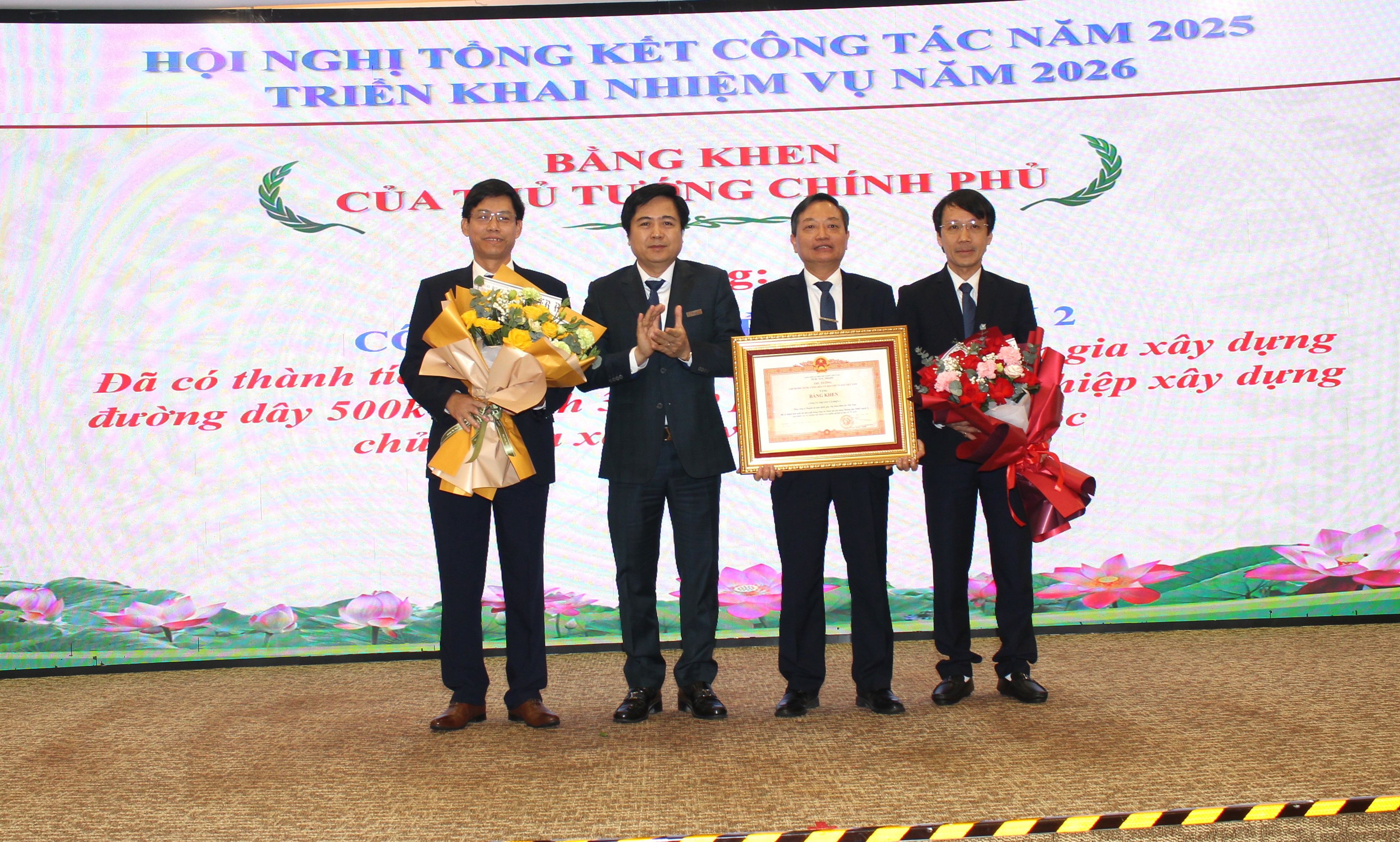 Ông Trương Hữu Thành - Phó Bí thư Đảng ủy - Quyền Tổng giám đốc EVNNPT tặng Bằng khen của Thủ tướng Chính phủ cho tập thể PTC2