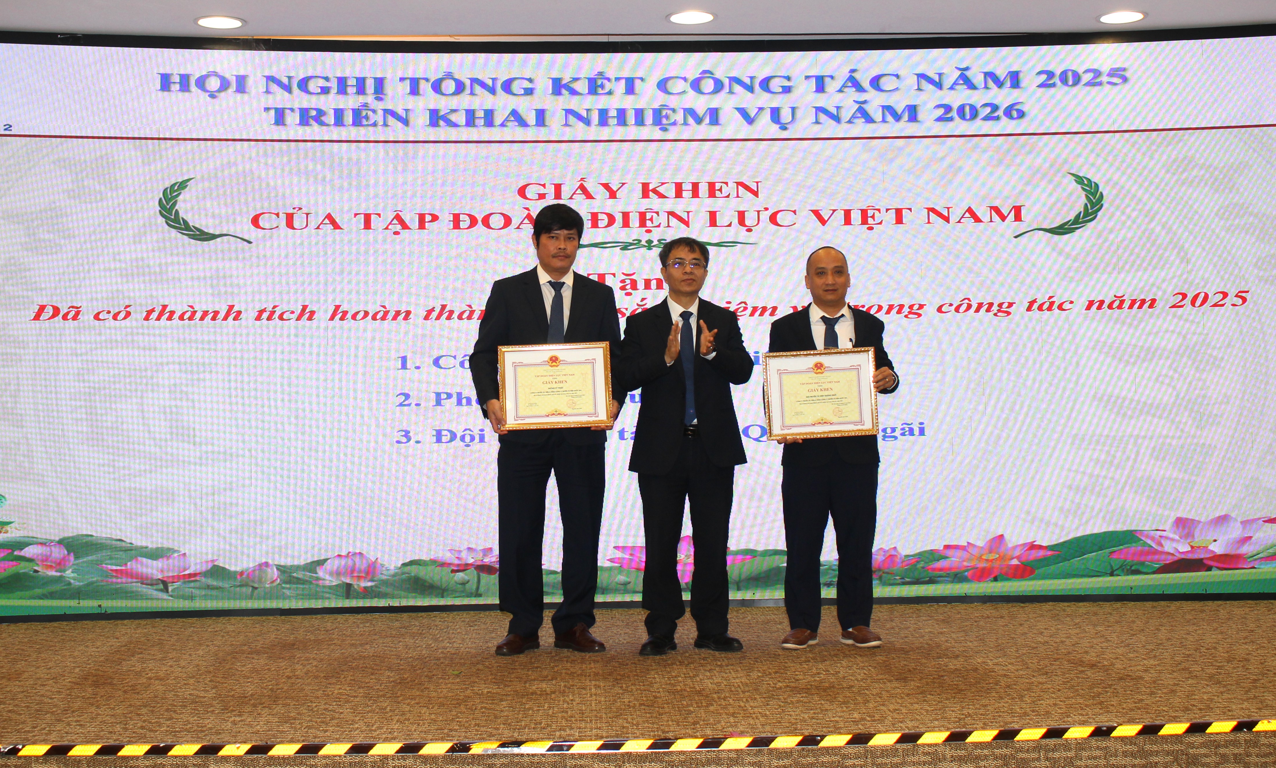 Ông Võ Hoài Nam - Thành viên HĐTV EVNNPT trao Giấy khen của Tập đoàn cho các tập thể.