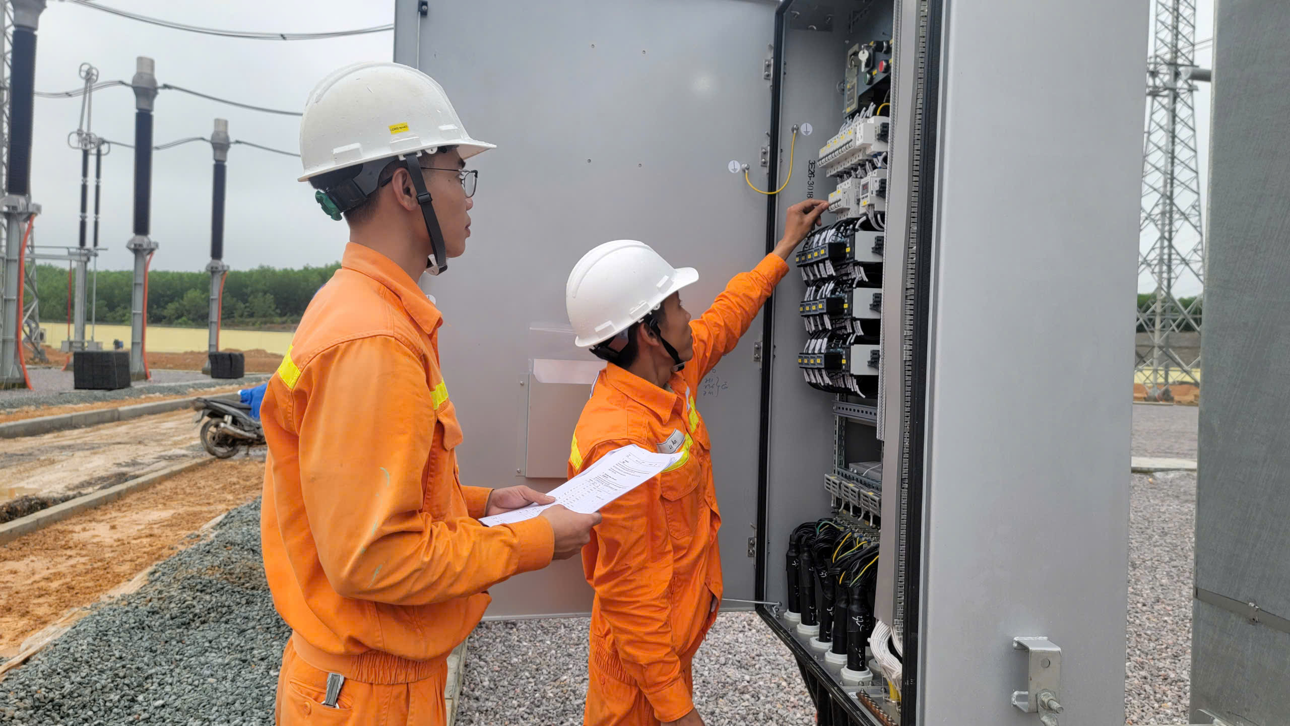 Nhân viên Tổ QLVH TBA 500kV Quảng Trị kiểm tra, nghiệm thu thiết bị.