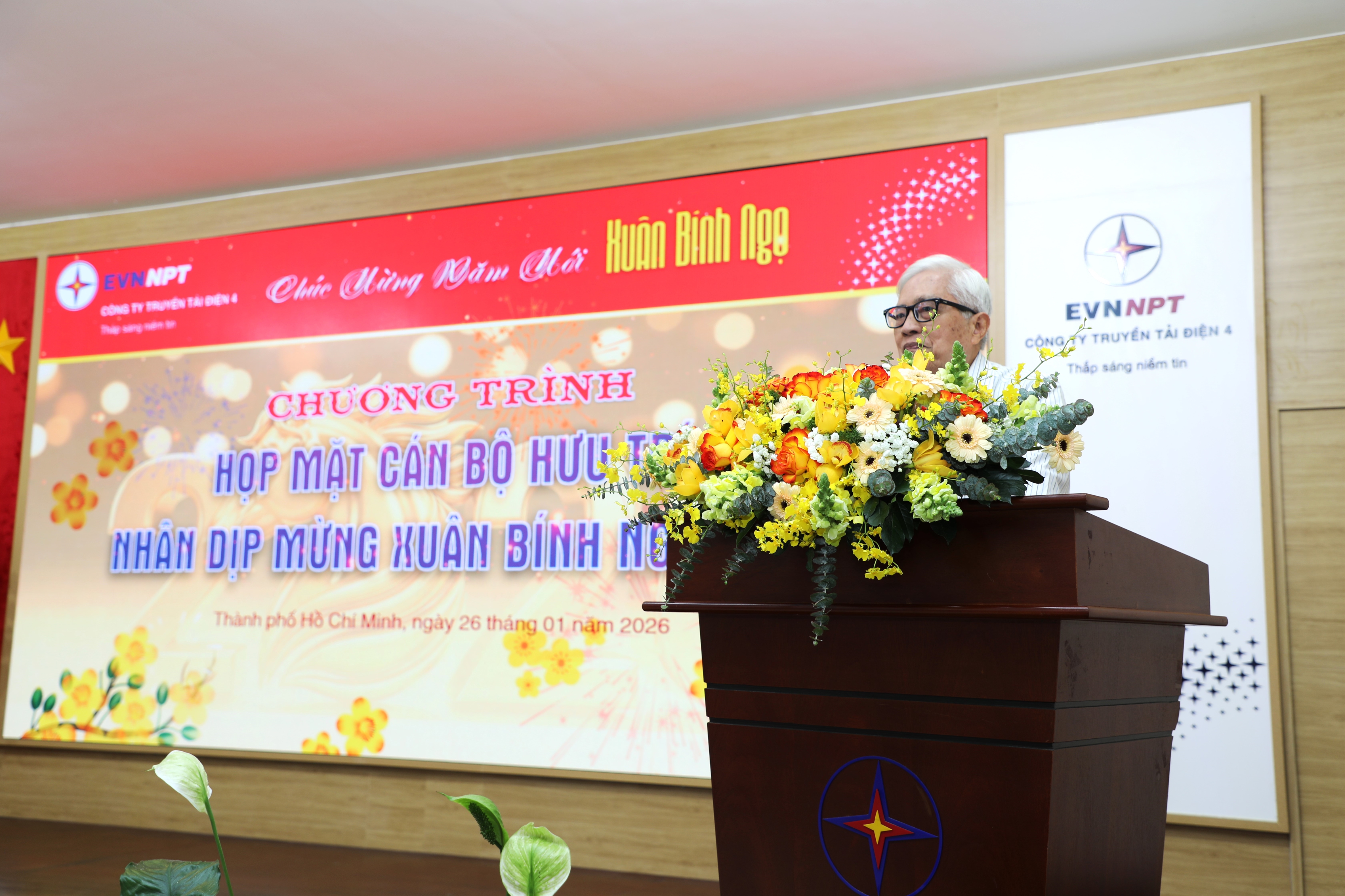 Phát biểu tại buổi họp mặt, thay mặt Ban Giám đốc Công ty, ông Nguyễn Văn Bảy bày tỏ niềm vui mừng, trân trọng khi được đón tiếp các thế hệ cán bộ hưu trí trở về mái nhà chung PTC4. Báo cáo khái quát tình hình hoạt động của Công ty, ông cho biết năm 2025 là một năm có nhiều khó khăn, thách thức; song với sự đoàn kết, nỗ lực của tập thể CBCNV, PTC4 đã đảm bảo vận hành lưới điện an toàn, tin cậy, hoàn thành tốt các nhiệm vụ được giao, đặc biệt là triển khai các dự án trọng điểm và đẩy mạnh ứng dụng công nghệ số trong công tác quản lý, vận hành.