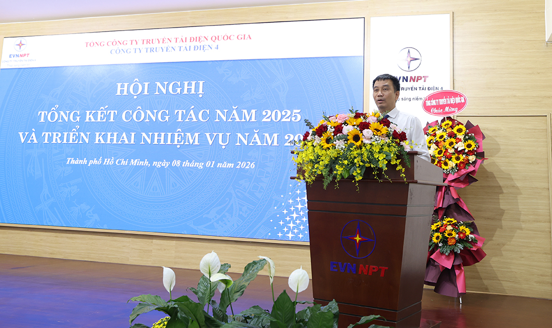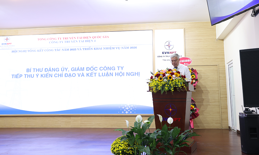 Phát biểu tiếp thu, đồng chí Nguyễn Văn Hóa – Bí thư Đảng ủy, Giám đốc PTC4 trân trọng cảm ơn sự quan tâm, chỉ đạo sát sao của lãnh đạo EVNNPT và các Ban chuyên môn trong thời gian qua. Bước sang năm 2026, tập thể CBCNV PTC4 sẽ tiếp tục đoàn kết, nỗ lực, quyết tâm hoàn thành tốt nhất các nhiệm vụ được giao, góp phần cùng EVNNPT hoàn thành xuất sắc nhiệm vụ Tập đoàn giao.