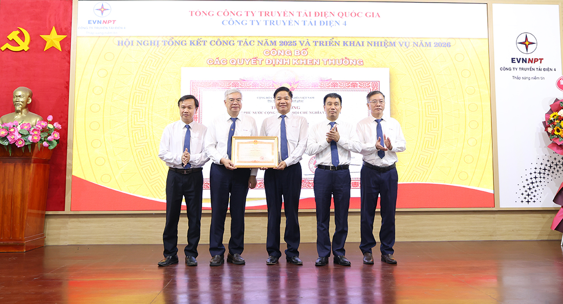 Công ty Truyền tải điện 4 đón nhận Bằng khen của Thủ tướng Chính phủ vì đã có thành tích xuất sắc đột xuất trong công tác tham gia xây dựng Đường dây 500kV mạch 3 Quảng Trạch - Phố Nối, góp phần vào sự nghiệp xây dựng chủ nghĩa xã hội và bảo vệ Tổ quốc.