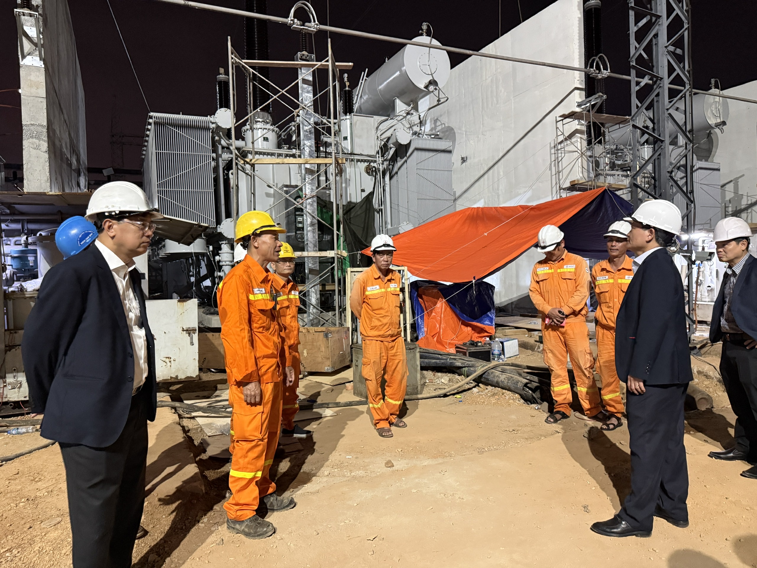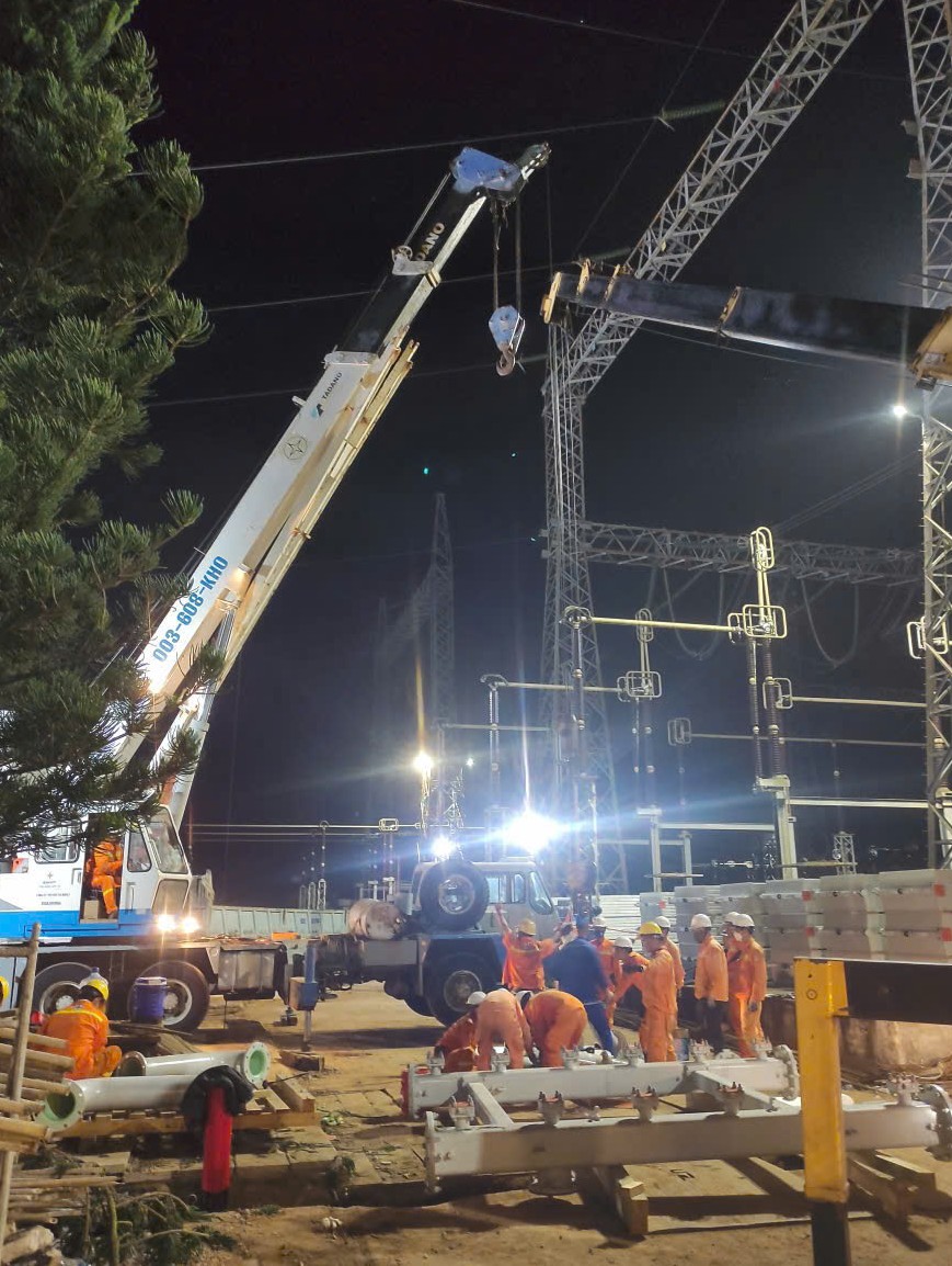 Người lao động PTC2 làm việc xuyên đêm, xuyên tết dự án nâng công suất tại TBA 500kV Đà Nẵng.