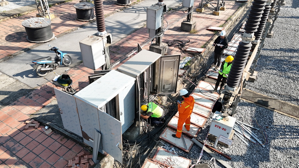 Lực lượng QLVH TBA 220kV Vật Cách, giám sát công tác thi công tại hiện trường