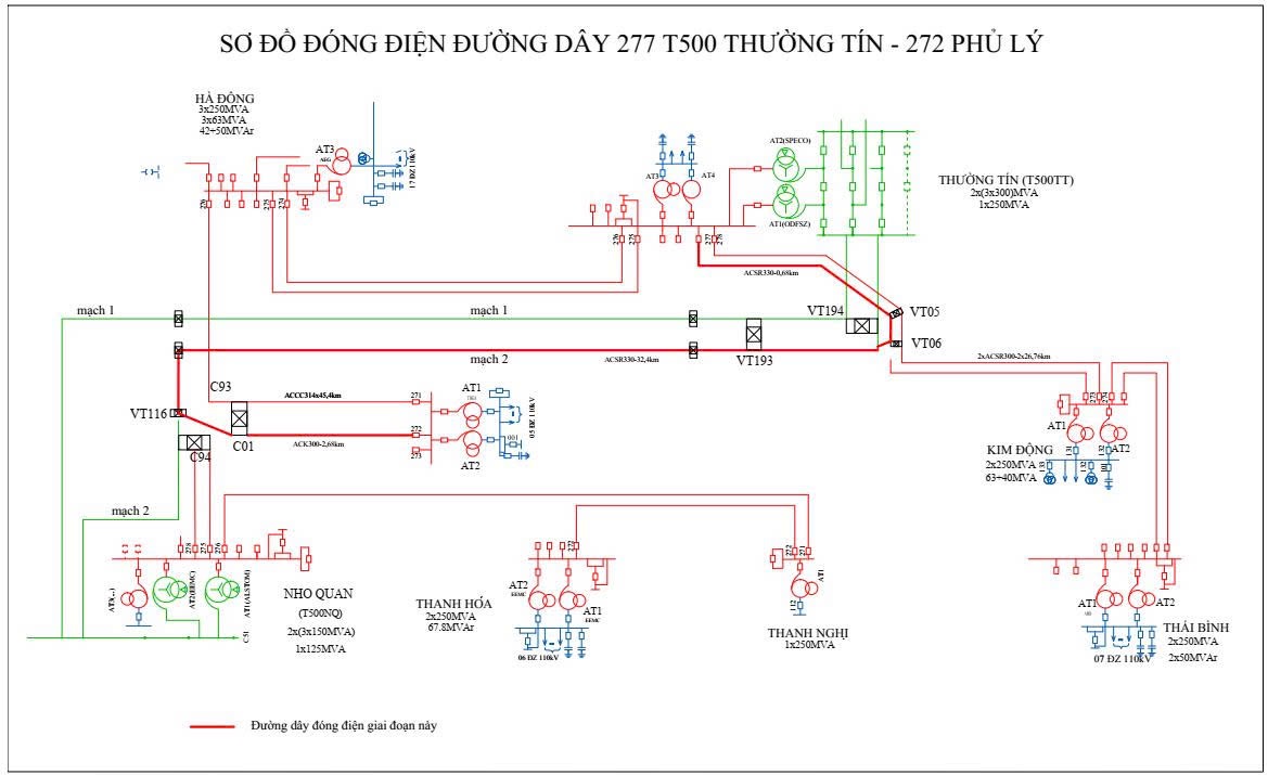 Sơ đồ đóng điện đường dây 277 T500 Thường Tín - 272 Phủ Lý