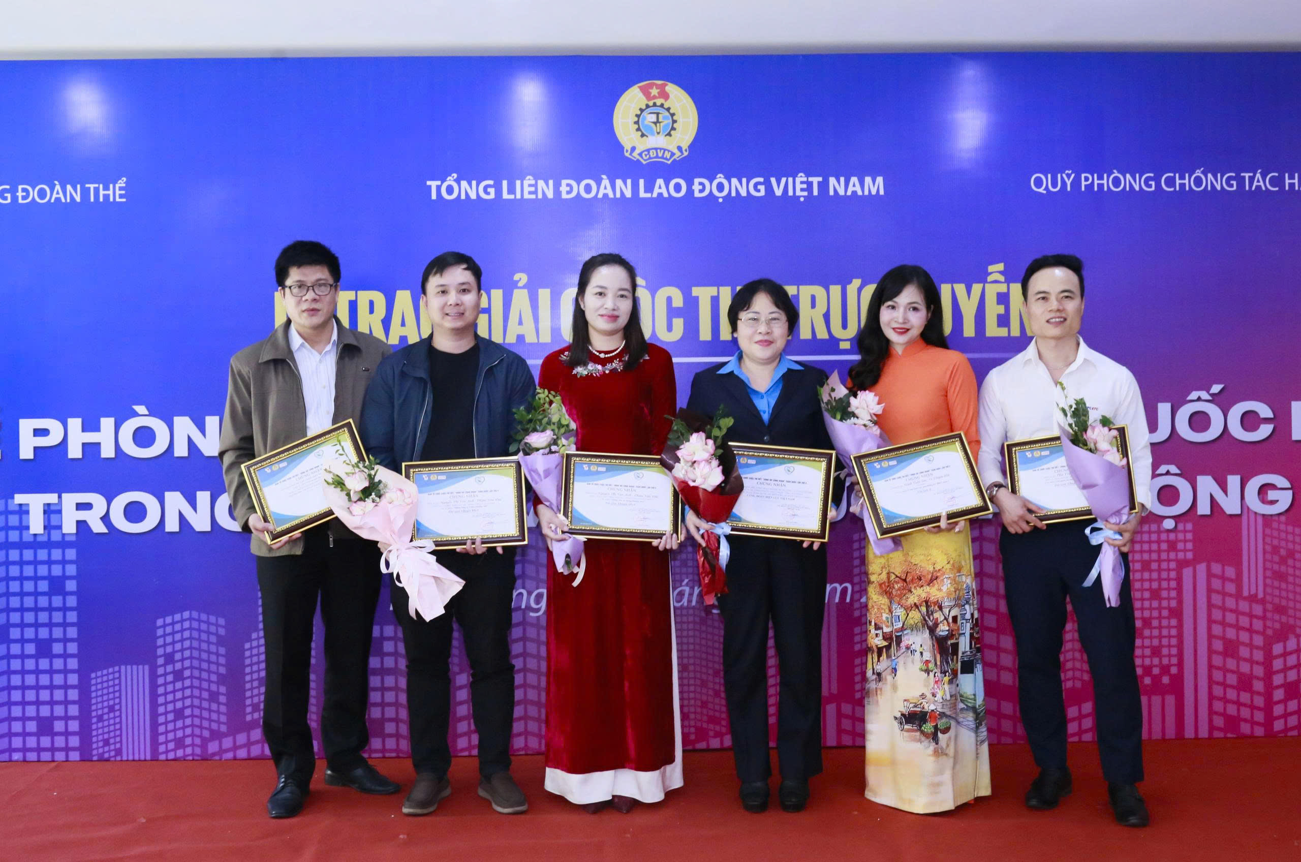 Đại diện tập thể Công đoàn ĐLVN và các tác giả ngành Điện đoạt giải Cuộc thi viết "Vòng tay Công đoàn" lần thứ V
