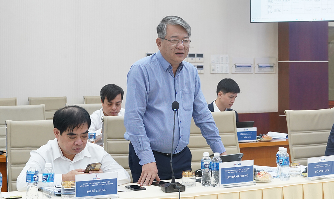 Trưởng Ban Đầu tư xây dựng EVN Lê Thành Chung phát biểu tại buổi làm việc