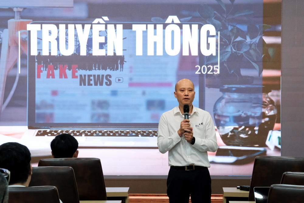 Nhà báo Hoàng Nam Giang, Thạc sĩ báo chí, Trưởng Văn phòng đại diện báo Pháp luật TP.HCM tại Hà Nội, truyền đạt: Kỹ năng xử lý khủng hoảng truyền thông và quan hệ báo chí tại khóa học