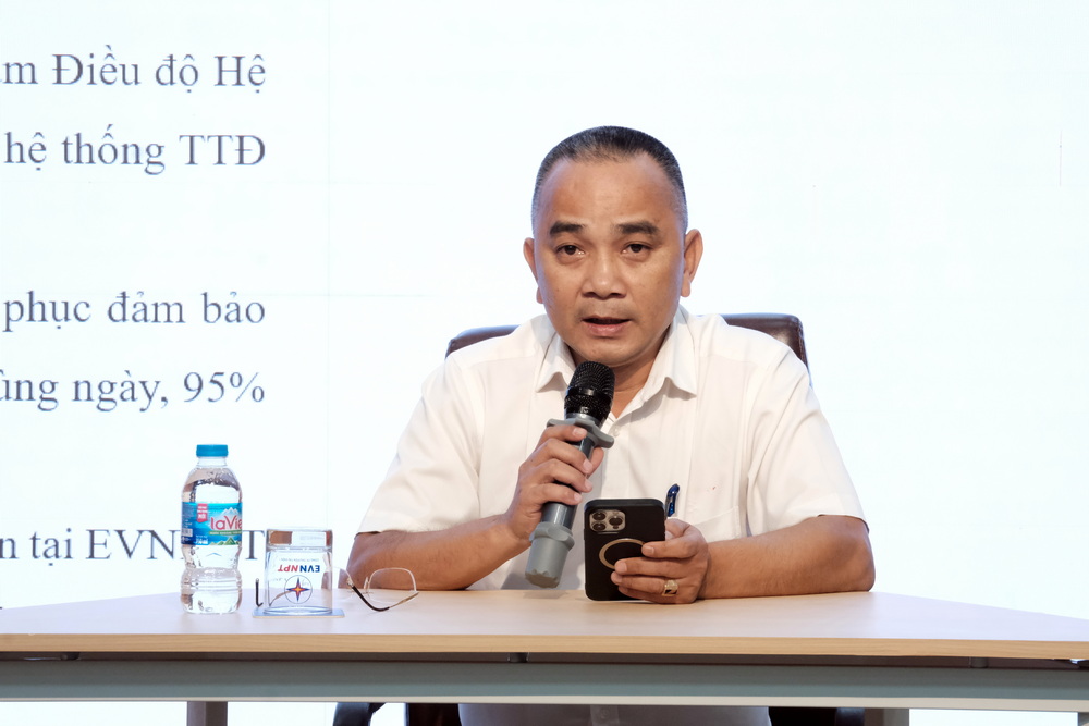 Ông Ngô Thế Phong - Đội phó đội Sửa chữa thí nghiệm điện 1, PTC1 đang thực hành Kỹ năng phát ngôn và trả lời báo chí