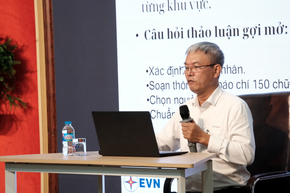 Các tình huống được xây dựng dựa trên những sự việc thực tế trong ngành điện như sự cố kỹ thuật, phản ứng của người lao động, thông tin sai lệch trên mạng xã hội. Học viên được thực hành, phản biện chéo, quay clip phỏng vấn và nhận góp ý trực tiếp từ chuyên gia, tạo nên bầu không khí học tập sôi nổi, cầu thị và giàu cảm xúc.