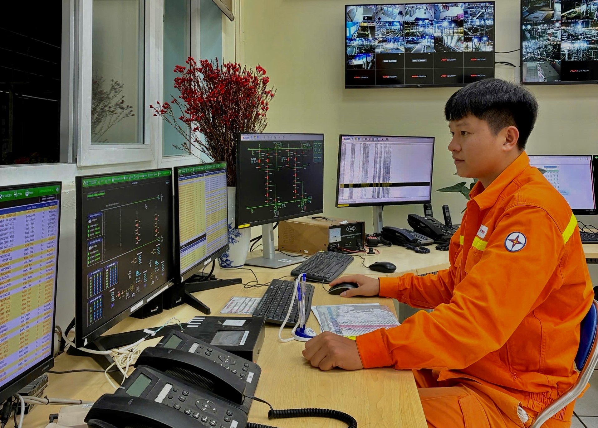 Tiếng thiết bị vận hành đều đặn, từng thông số được theo dõi sát sao. Với những người làm công tác quản lý vận hành, giao thừa không phải lúc để xao nhãng. Phụ tải tăng cao, nhu cầu sử dụng điện lớn, mọi thao tác đều phải chính xác. Giữ cho dòng điện an toàn, liên tục để mọi nhà đón Tết trọn vẹn – đó là điều anh em luôn đặt lên trước hết.