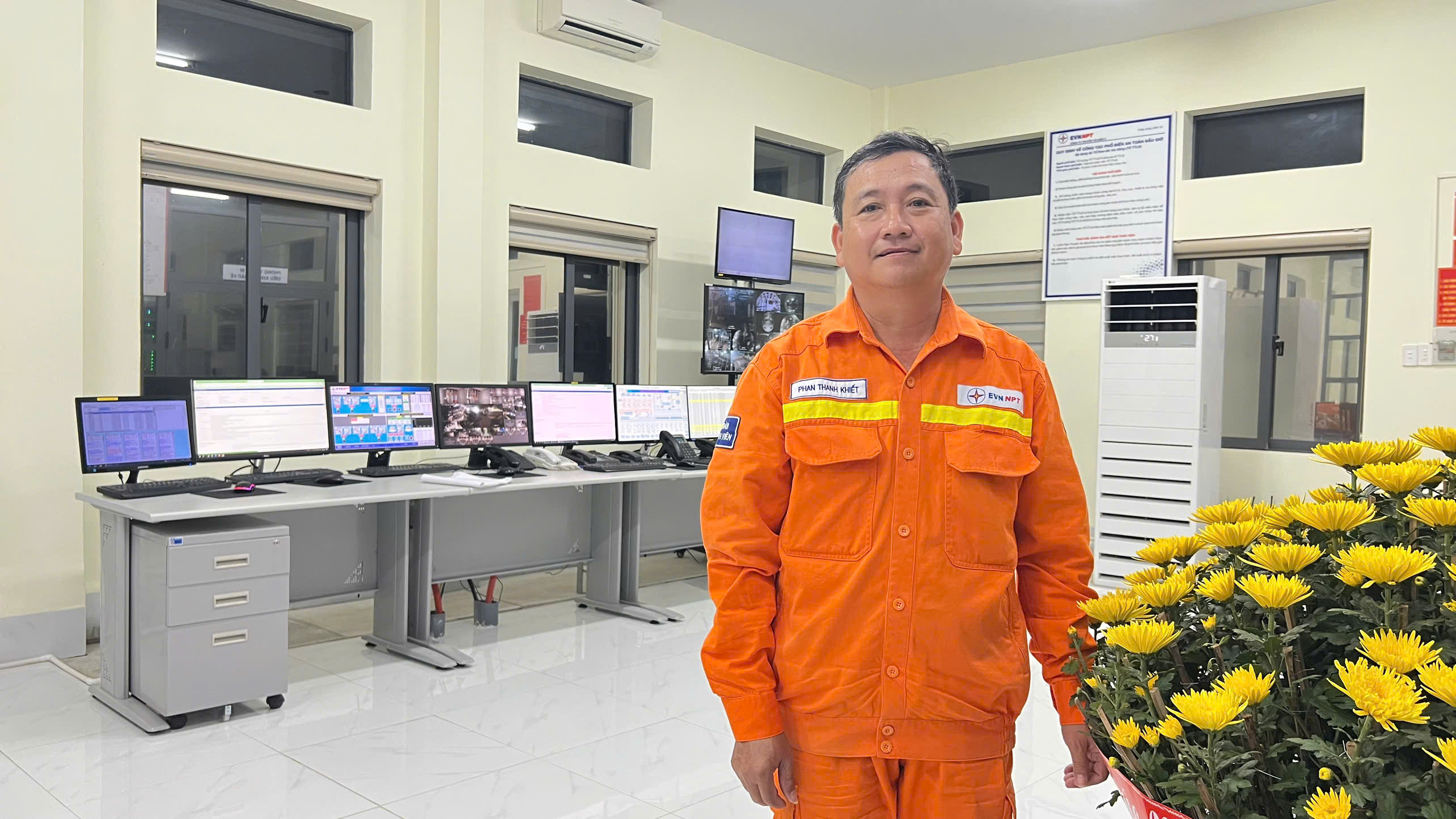 Tại Trạm biến áp 220kV Quy Nhơn (thuộc Truyền tải điện Gia Lai – PTC3), nơi từng chịu ảnh hưởng nặng nề của bão số 13 vào tháng 11/2025, anh Phan Thanh Khiết, Trưởng kíp trực, là một trong những người có thâm niên lâu năm nhất tại trạm với 28 năm gắn bó.