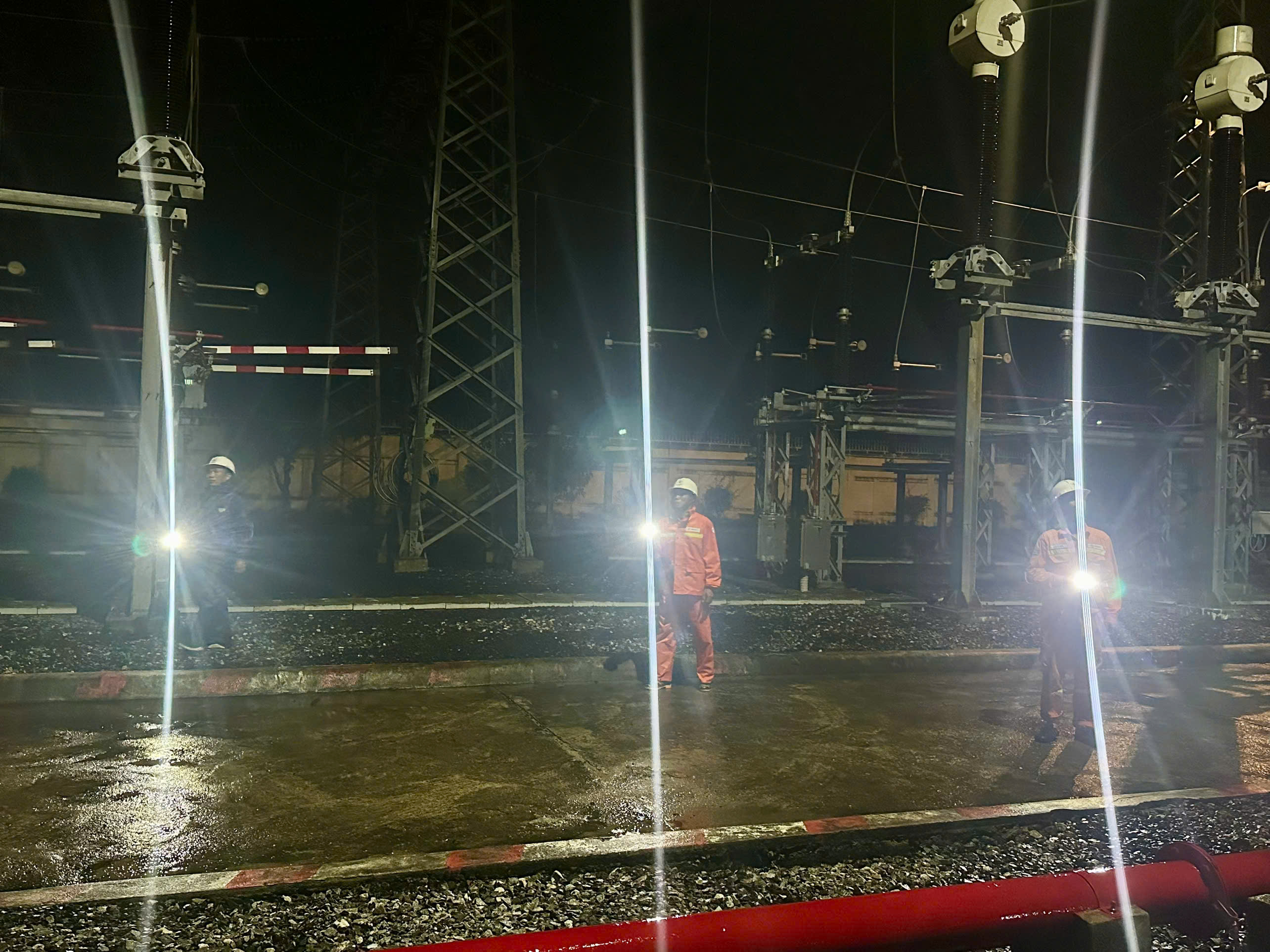Ô. Nguyễn Công Thắng - Giám đốc PTC3 ứng trực chỉ đạo tại Trạm biến áp 220kV Quy Nhơn ngay trong tâm bão 13