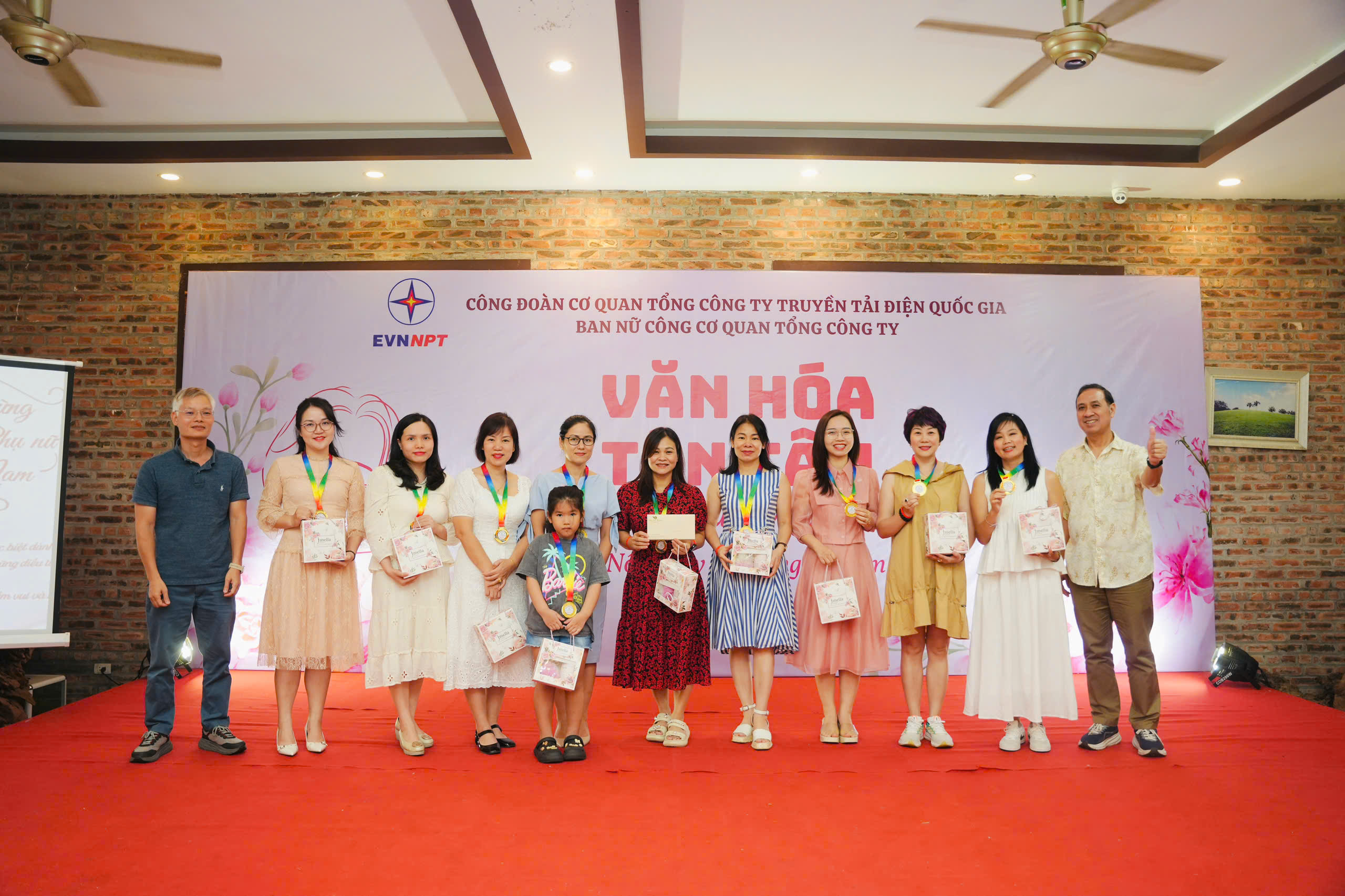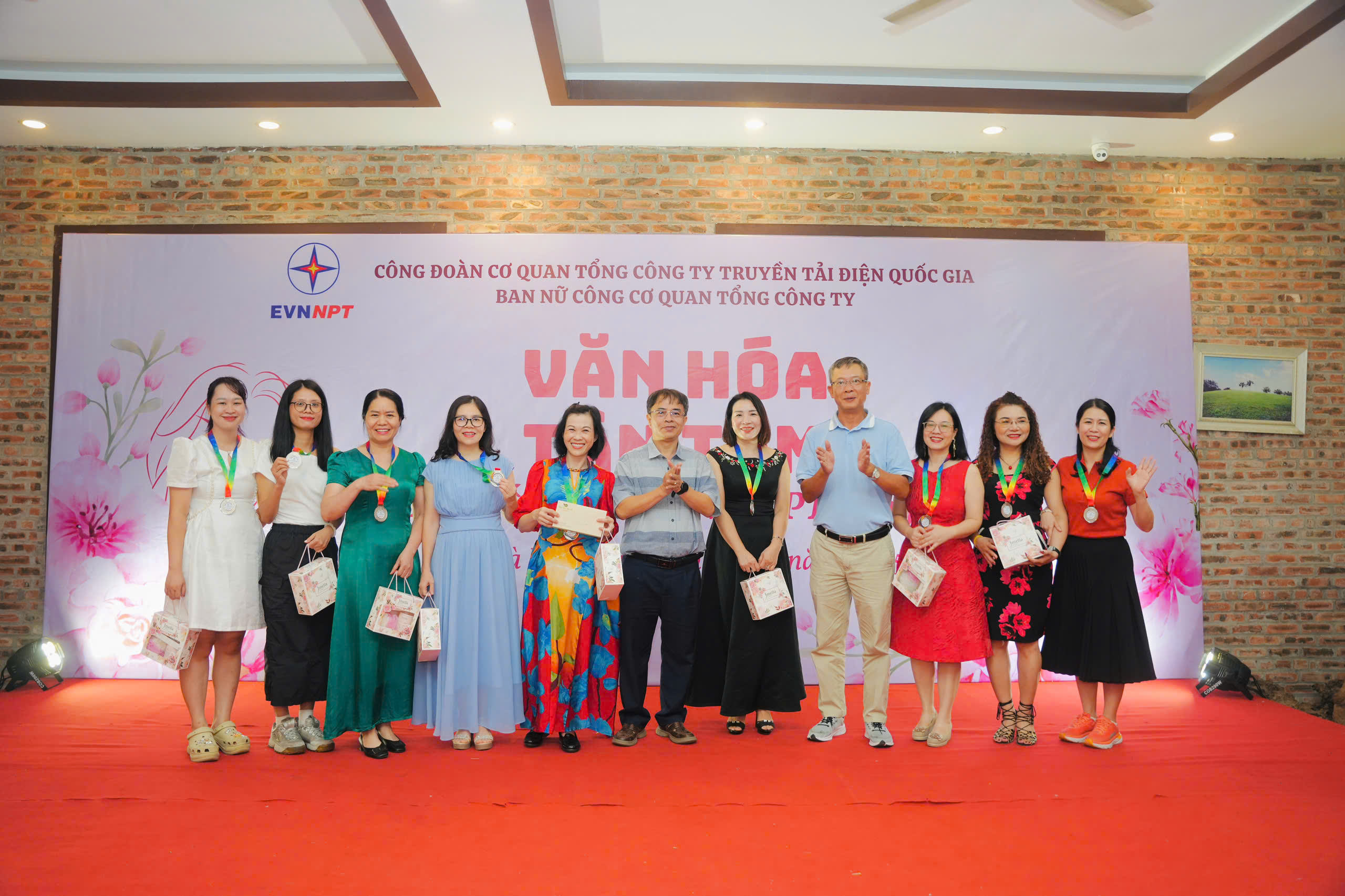 Ban Tổ chức trao khen thưởng và chụp ảnh lưu niệm cùng chị em Cơ quan EVNNPT