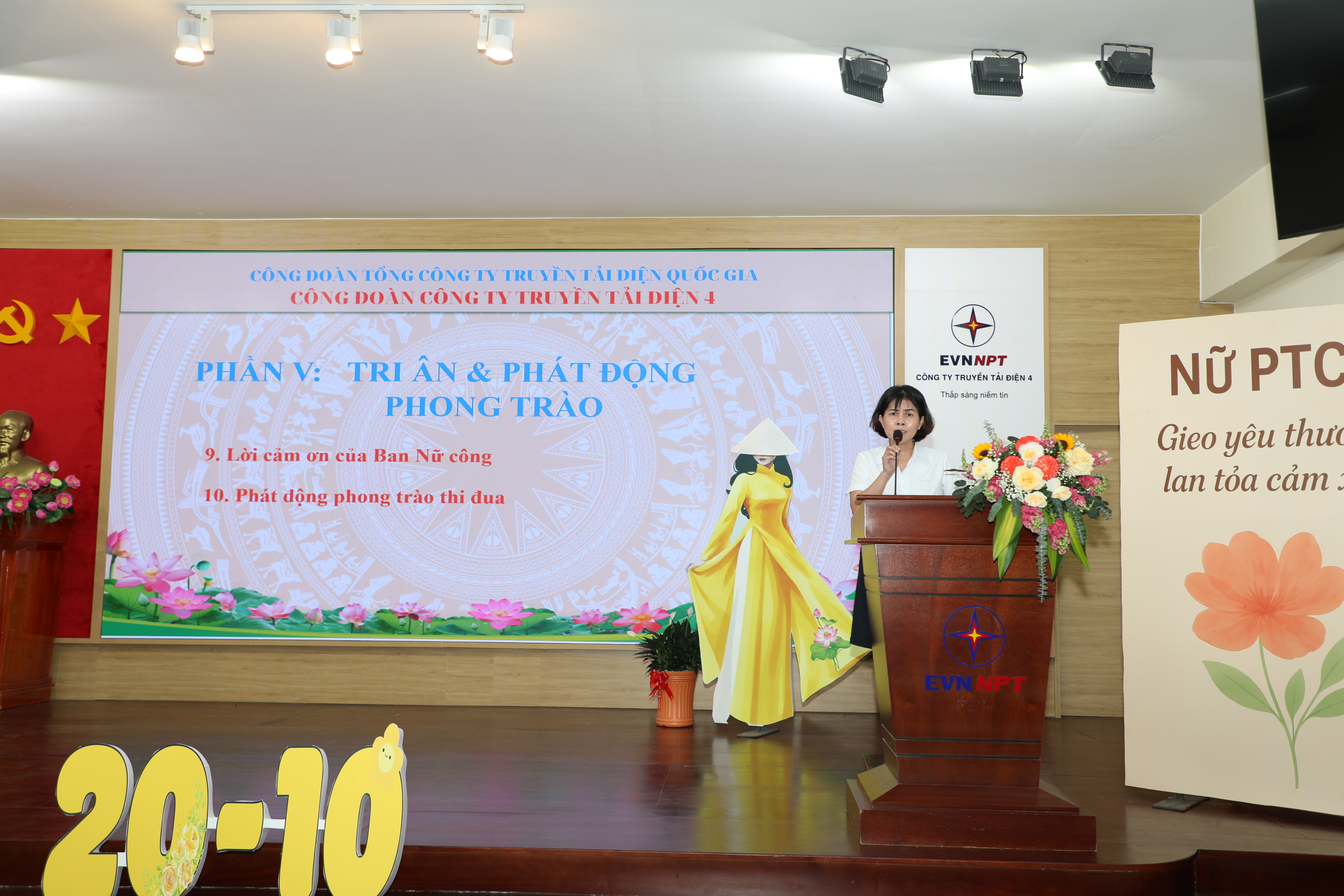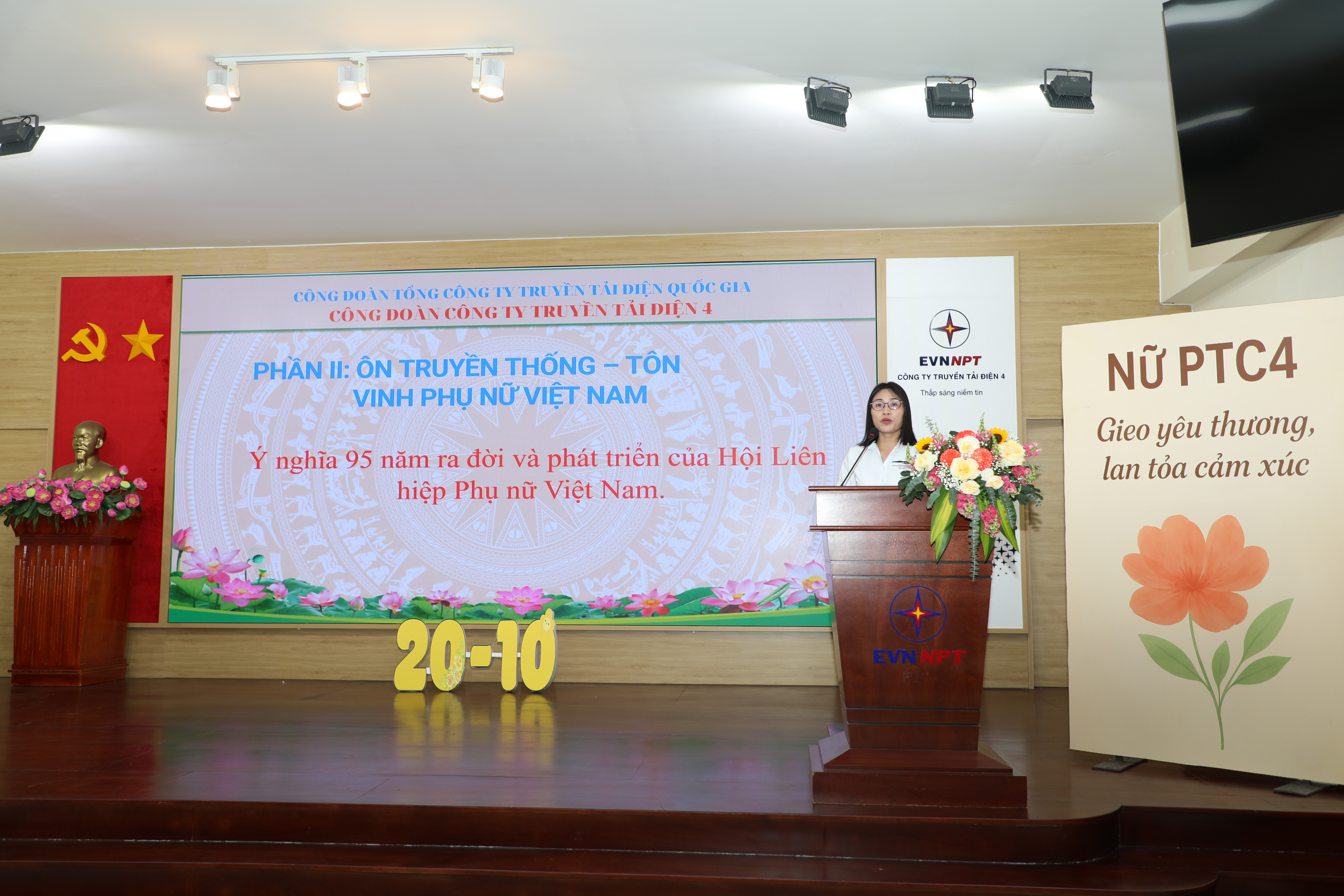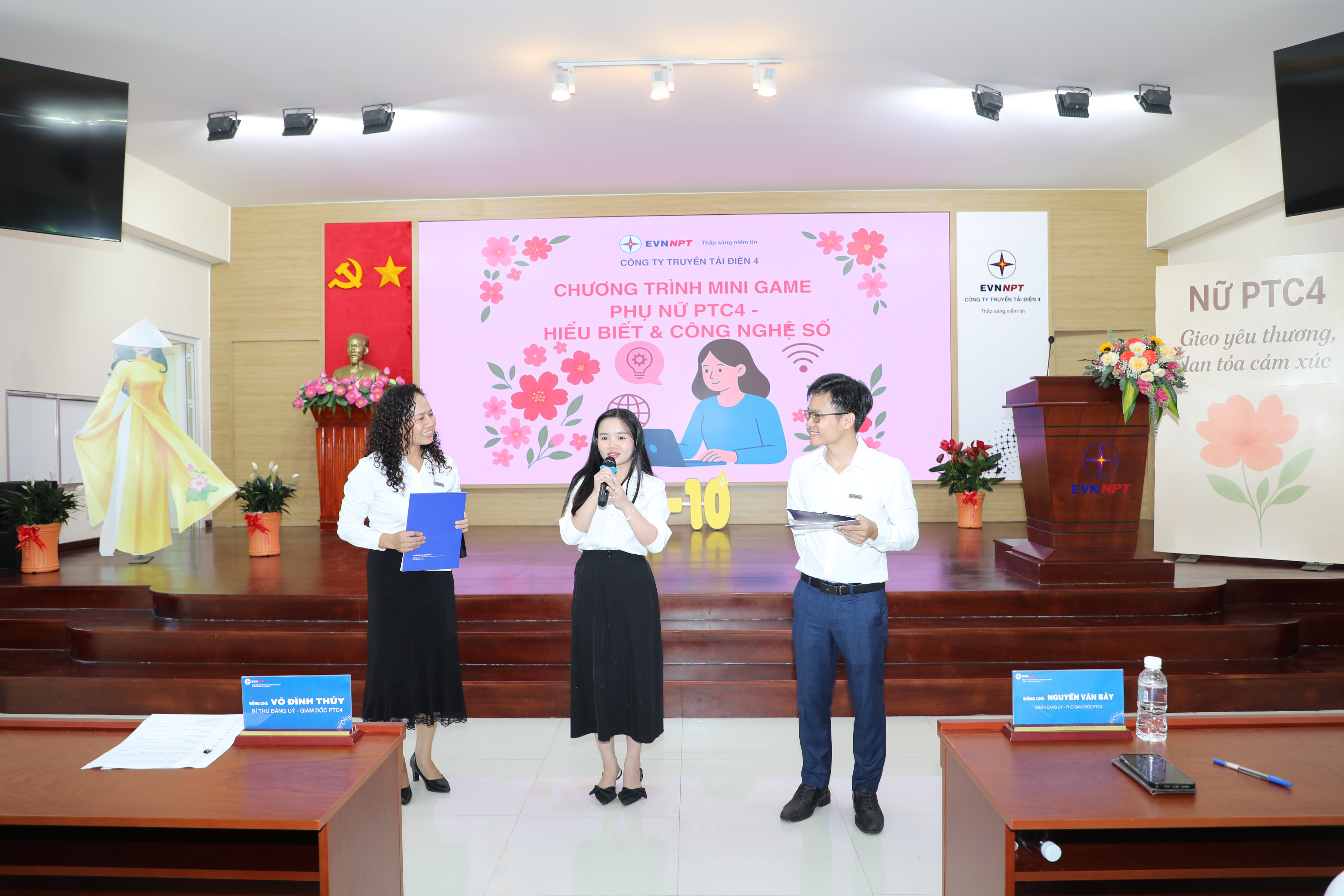 Cũng trong khuôn khổ Hội nghị, Công đoàn và Ban Nữ công đã tổ chức Cuộc thi sáng tạo Thiệp chúc mừng 20/10 bằng AI với chủ đề “Nữ PTC4 – Gửi yêu thương, lan tỏa cảm xúc”. Cuộc thi thu hút sự tham gia nhiệt tình của chị em với hơn 20 thiệp dự thi, 10 tác phẩm được trao giải. Ngoài ra, chương trình còn có phần đố vui “Phụ nữ Việt Nam – Hiểu biết & Công nghệ số”, tạo không khí sôi nổi, hào hứng và đầy ý nghĩa.