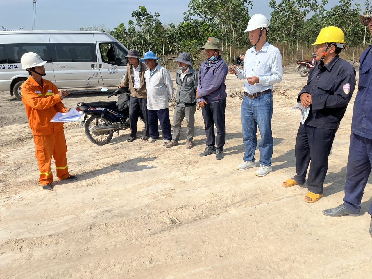 Đại diện nhà thầu thi công cao tốc lắng nghe hướng dẫn về biện pháp an toàn.