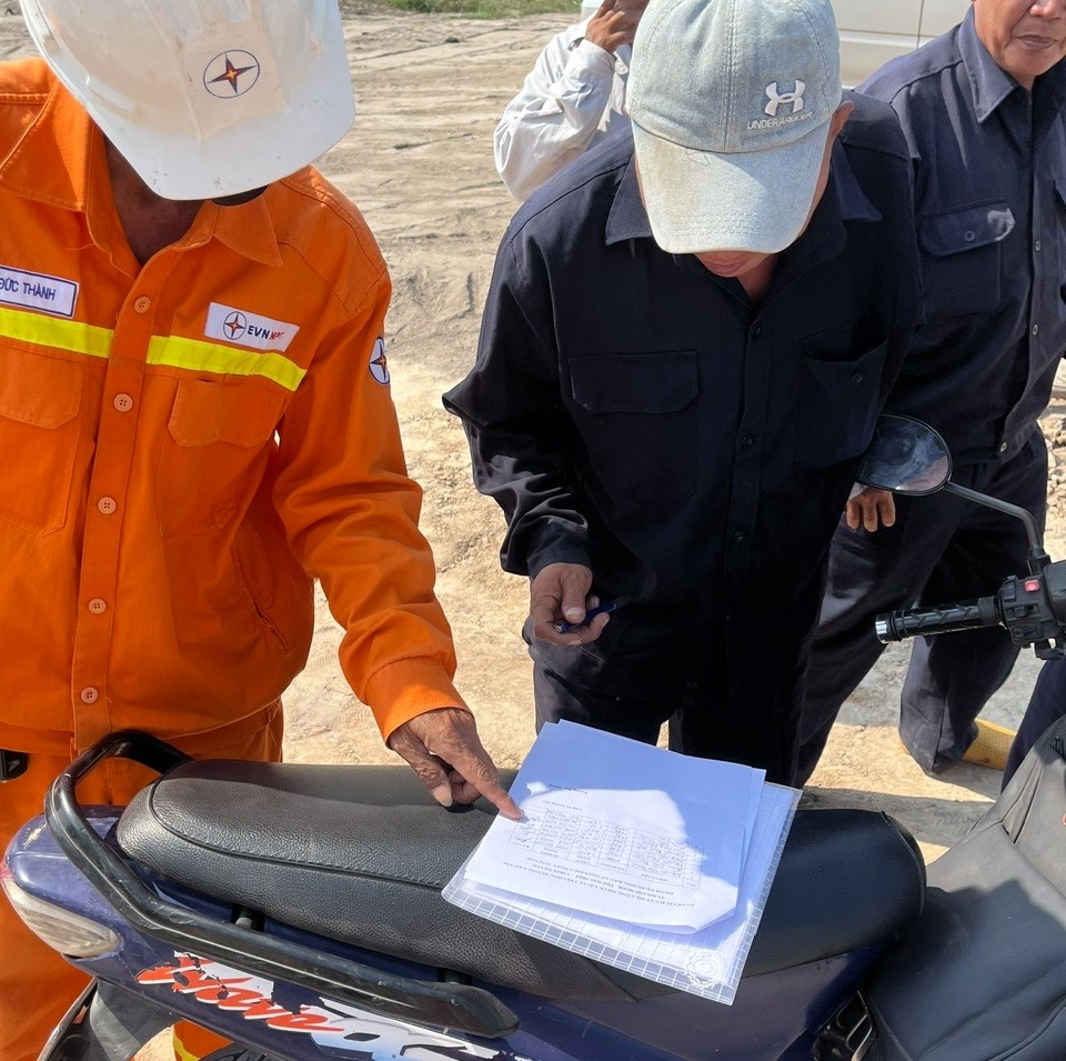 Công nhân nhà thầu ký cam kết thực hiện đúng quy định về an toàn điện dưới sự chứng kiến của đơn vị quản lý vận hành.