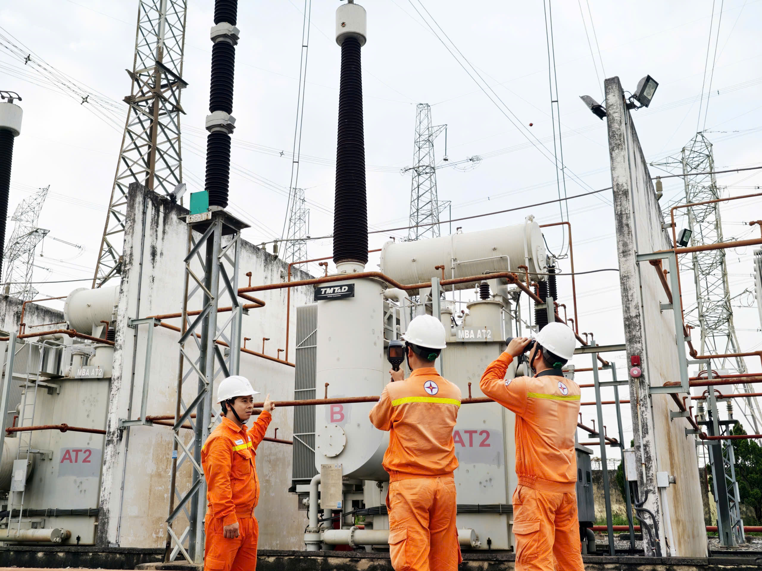 Anh Hà Văn Nguyên kiểm tra máy biến áp và thiết bị ngoài trời, trực tiếp quan sát, đánh giá tình trạng thiết bị