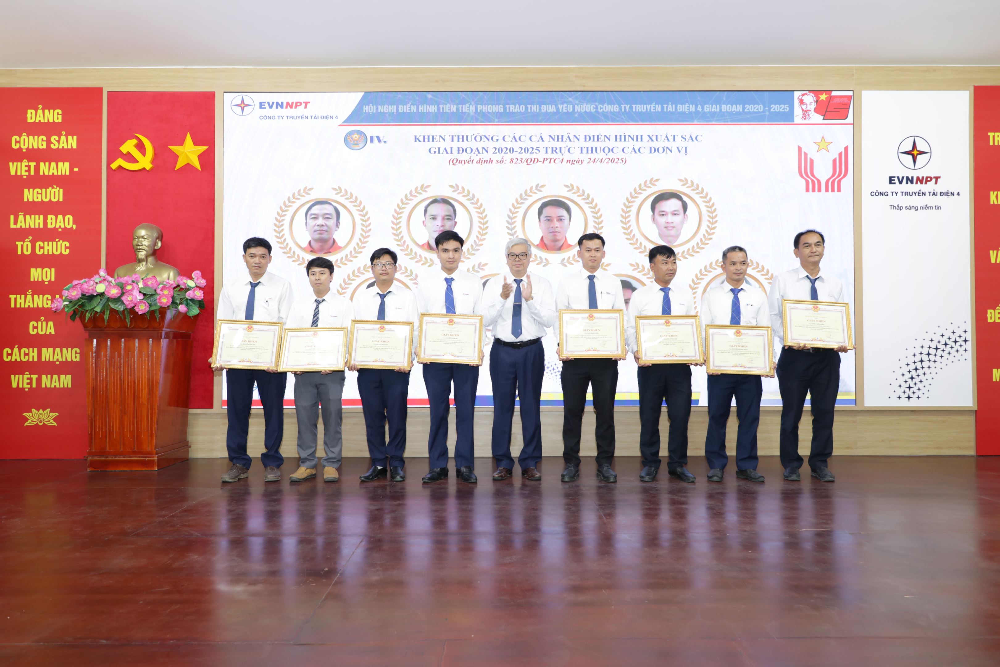 Anh Hà Văn Nguyên (người đứng thứ 2 bên trái) nhận bằng khen cá nhân điển hình xuất sắc giai đoạn 2020-2025 của Công ty Truyền tải điện 4