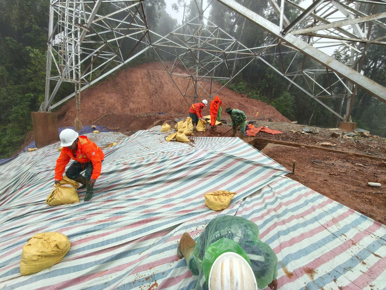 Các Tổ quản lý vận hành đường dây phủ bạt chống sạt lở tại các vị trí xung yếu.