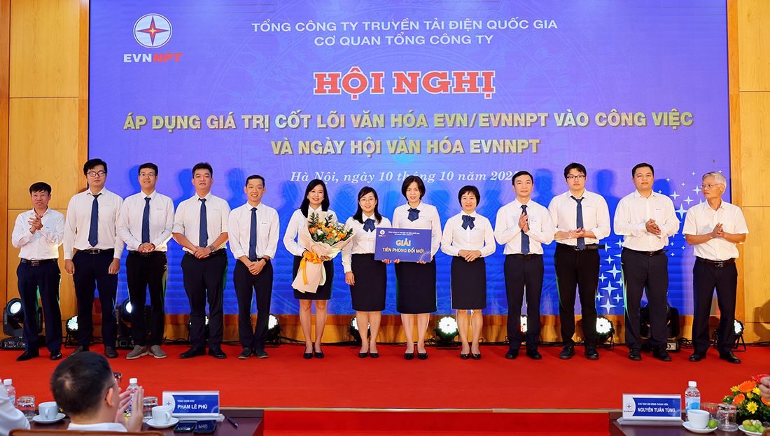 Ban Tổ chức trao giải Dấu ấn Văn hóa EVNNPT cho đội TRÁCH NHIỆM