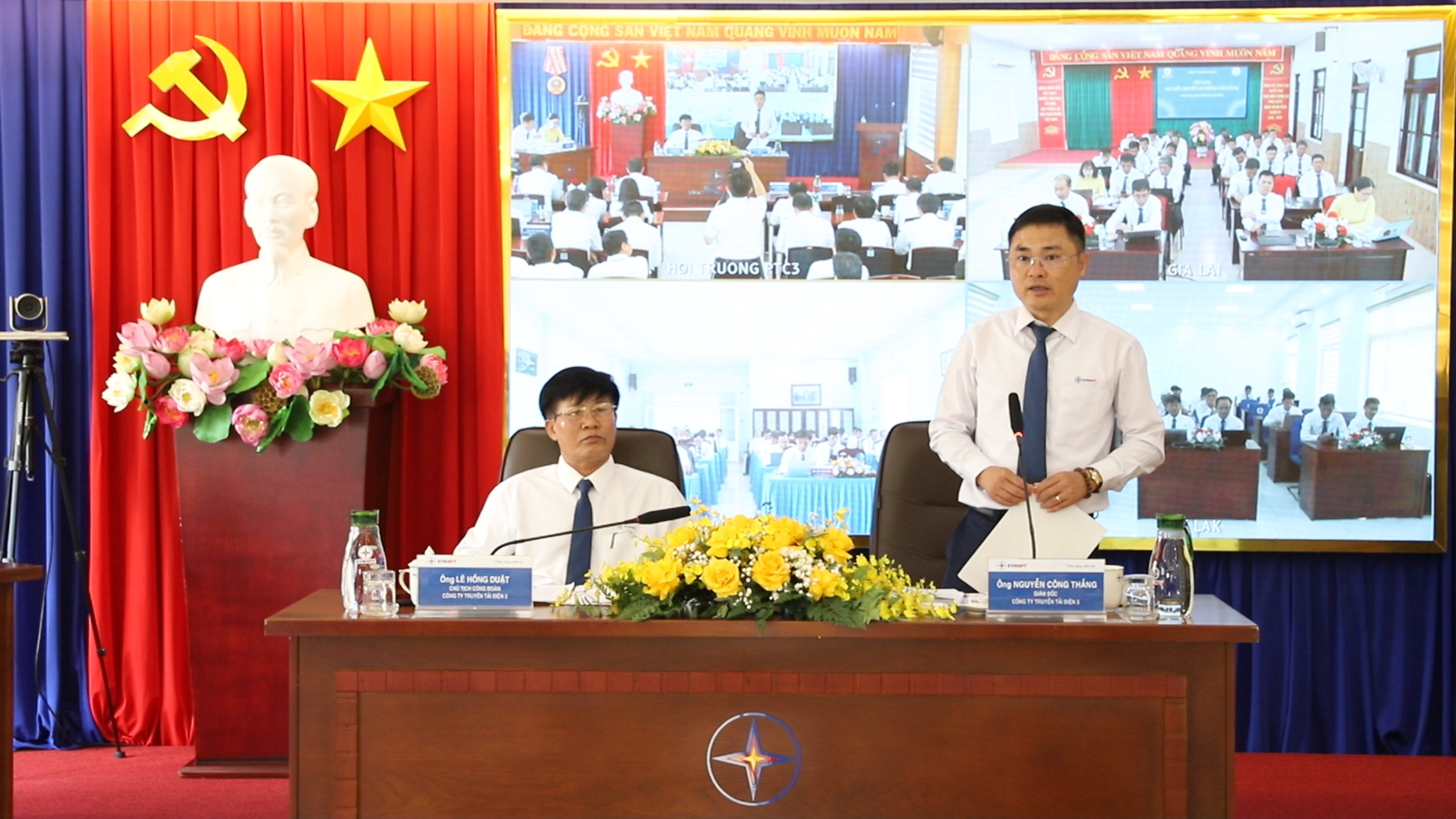 Đc Nguyễn Công Thắng - Bí thư Đảng ủy, Giám đốc PTC3 và Đc Lê Hồng Duật - UV BTV Đảng ủy, Chủ tịch Công đoàn PTC3 đồng chủ trì Hội nghị