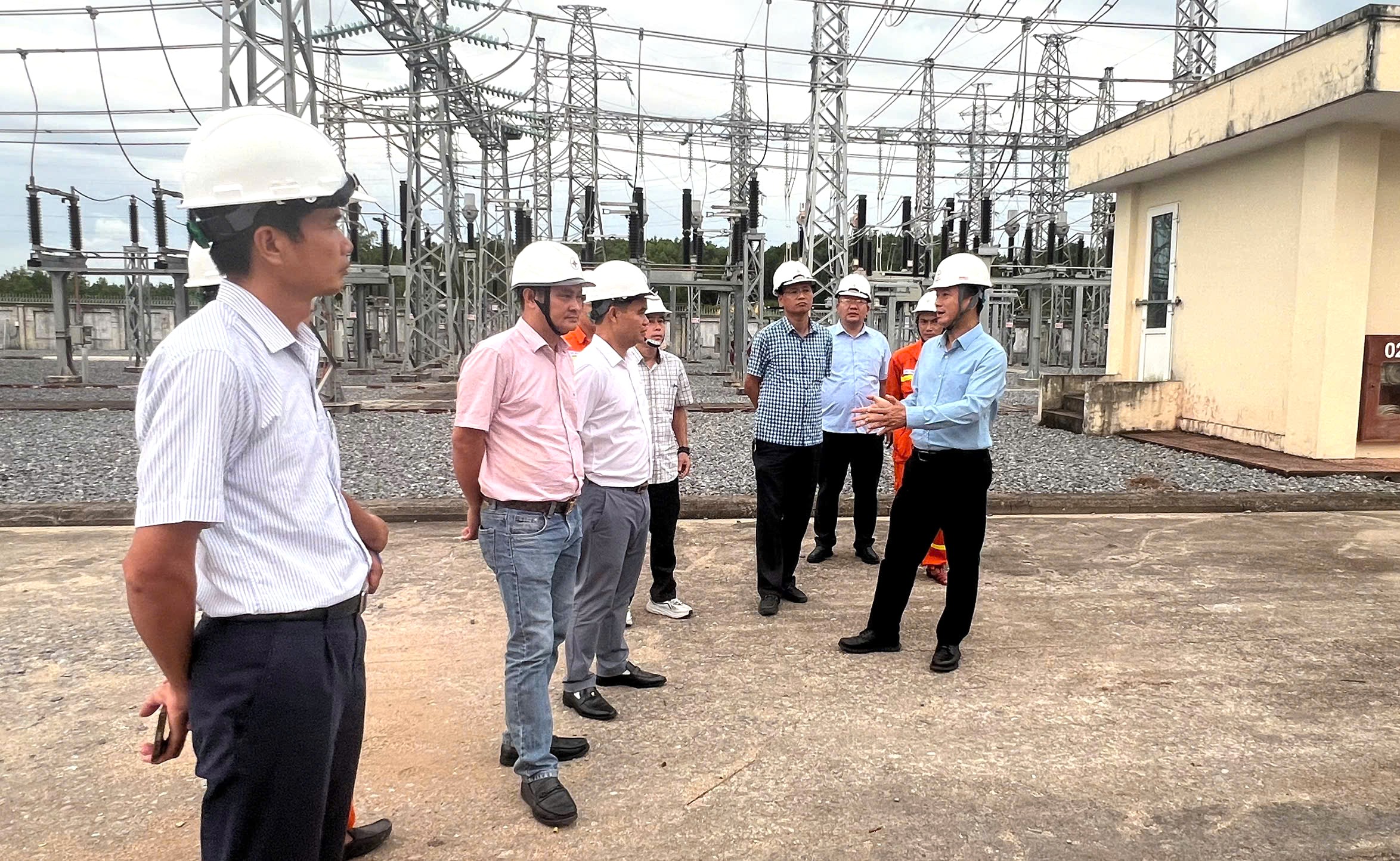 Phó Tổng giám đốc EVNNPT Lưu Việt Tiến và đoàn công tác kiểm tra công tác chuẩn bị ứng phó với bão số 11 tại Trạm biến áp 500kV Quảng Ninh