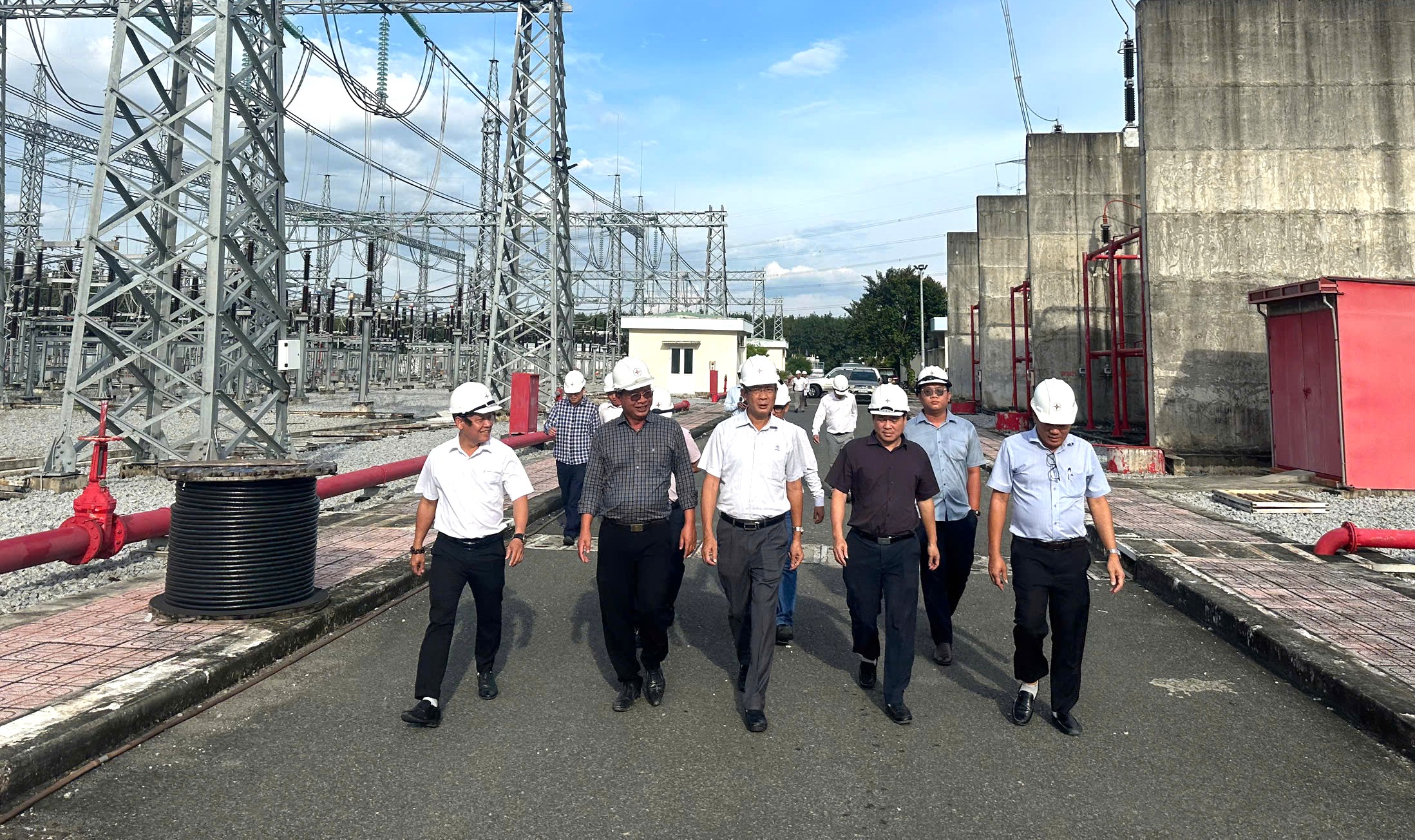 Phó Tổng giám đốc EVNNPT Nguyễn Ngọc Tân và đoàn công tác kiểm tra tiến độ dự án