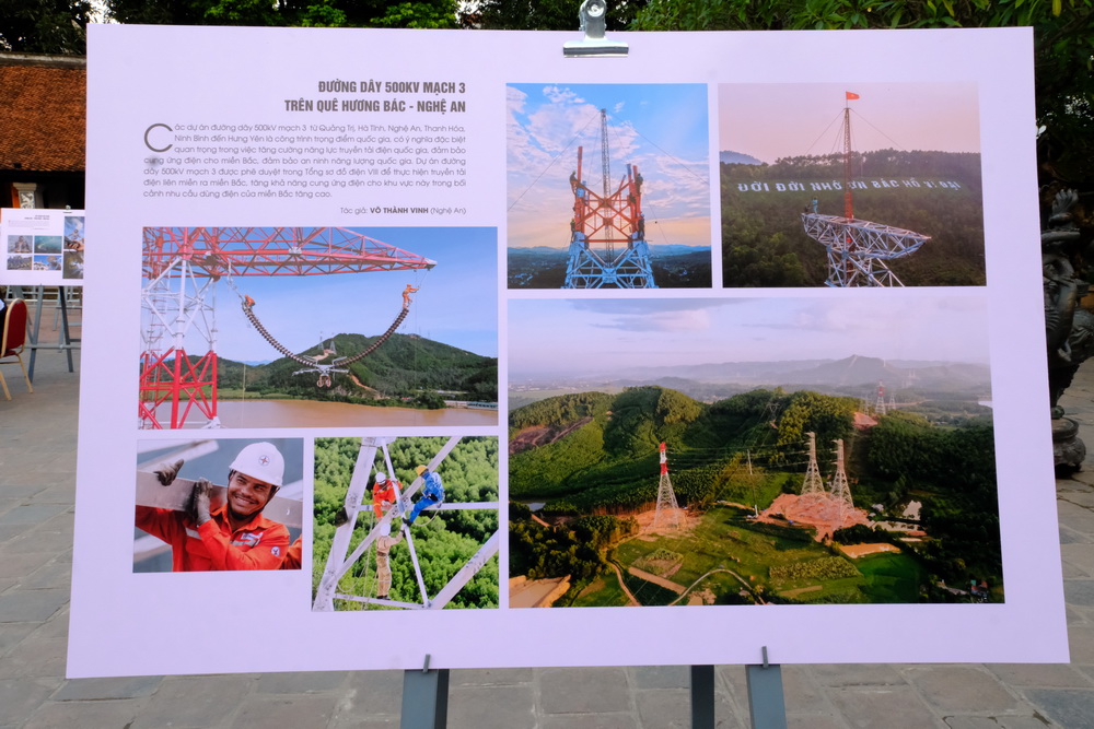 Trong số các tác phẩm tiêu biểu, “Đường dây 500kV mạch 3 trên quê hương Bác – Nghệ An” của tác giả Võ Thành Vinh, công tác tại Đội Truyền tải điện Nghệ An, Công ty Truyền tải điện 1 (PTC1) – Tổng công ty Truyền tải điện Quốc gia (EVNNPT), đã vinh dự được lựa chọn trưng bày tại triển lãm.