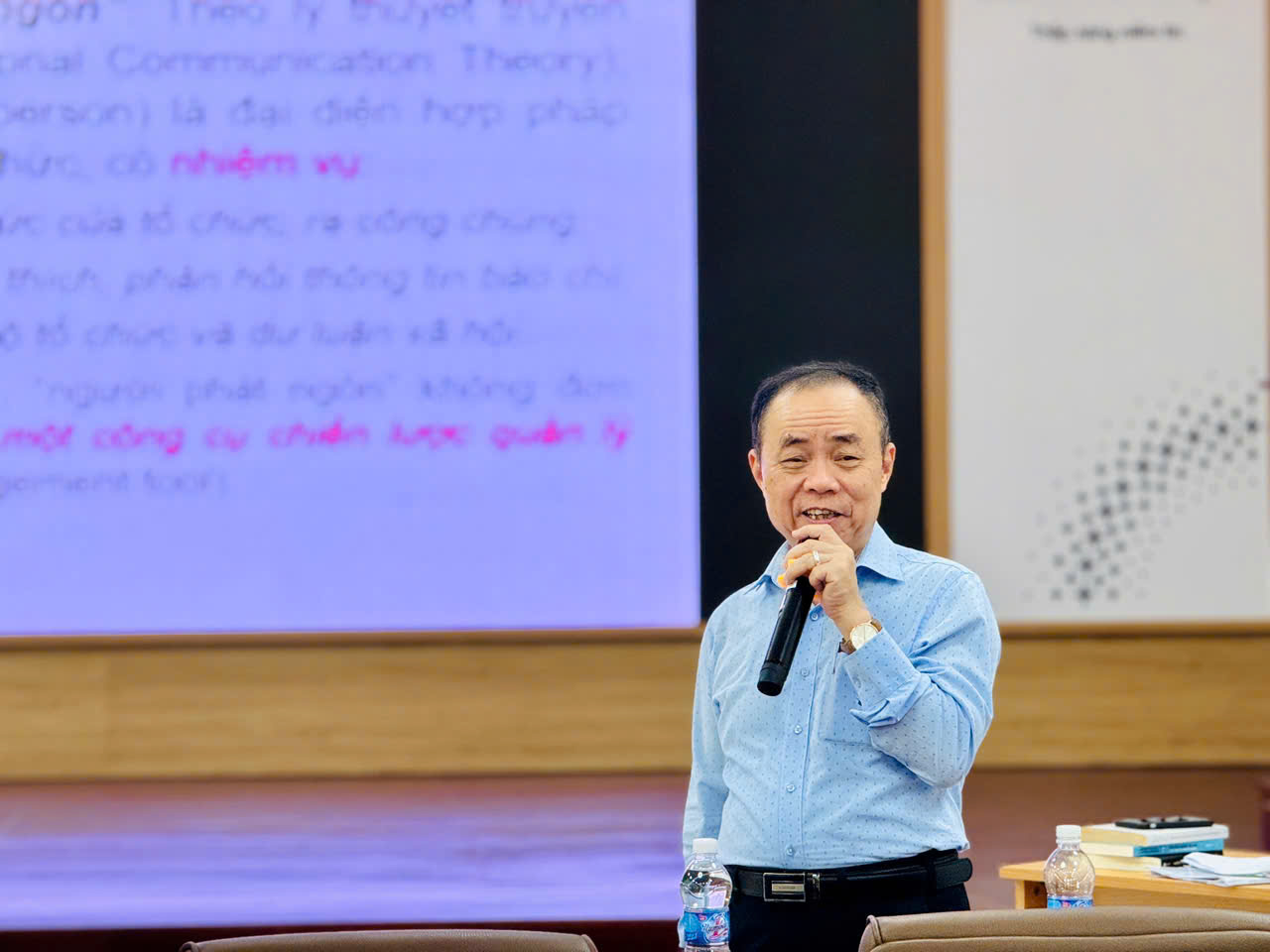 Nhà báo, Tiến sĩ Trần Bá Dung, Trưởng khoa Truyền thông và Thiết kế Đại học Hòa Bình, giảng dạy tại khóa học.