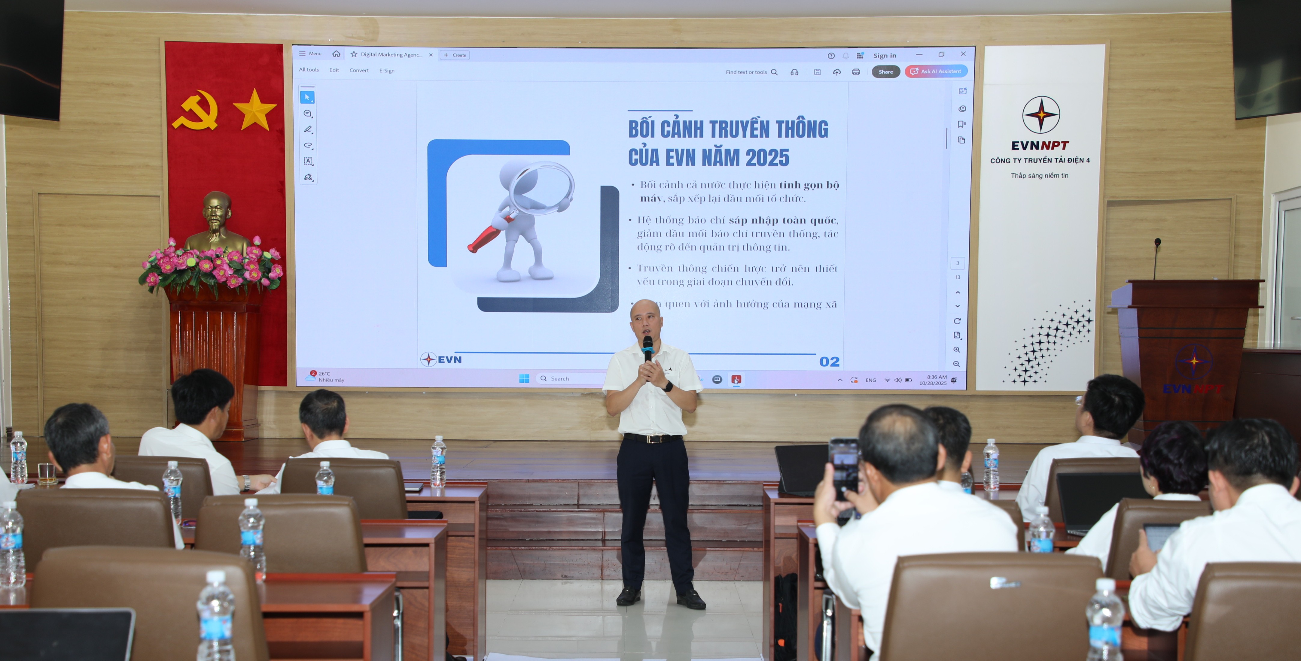 Ông Phạm Xuân Hường - Trưởng ban Truyền thông VHDN EVNNPT phát biểu khai mạc khóa đào tạo.