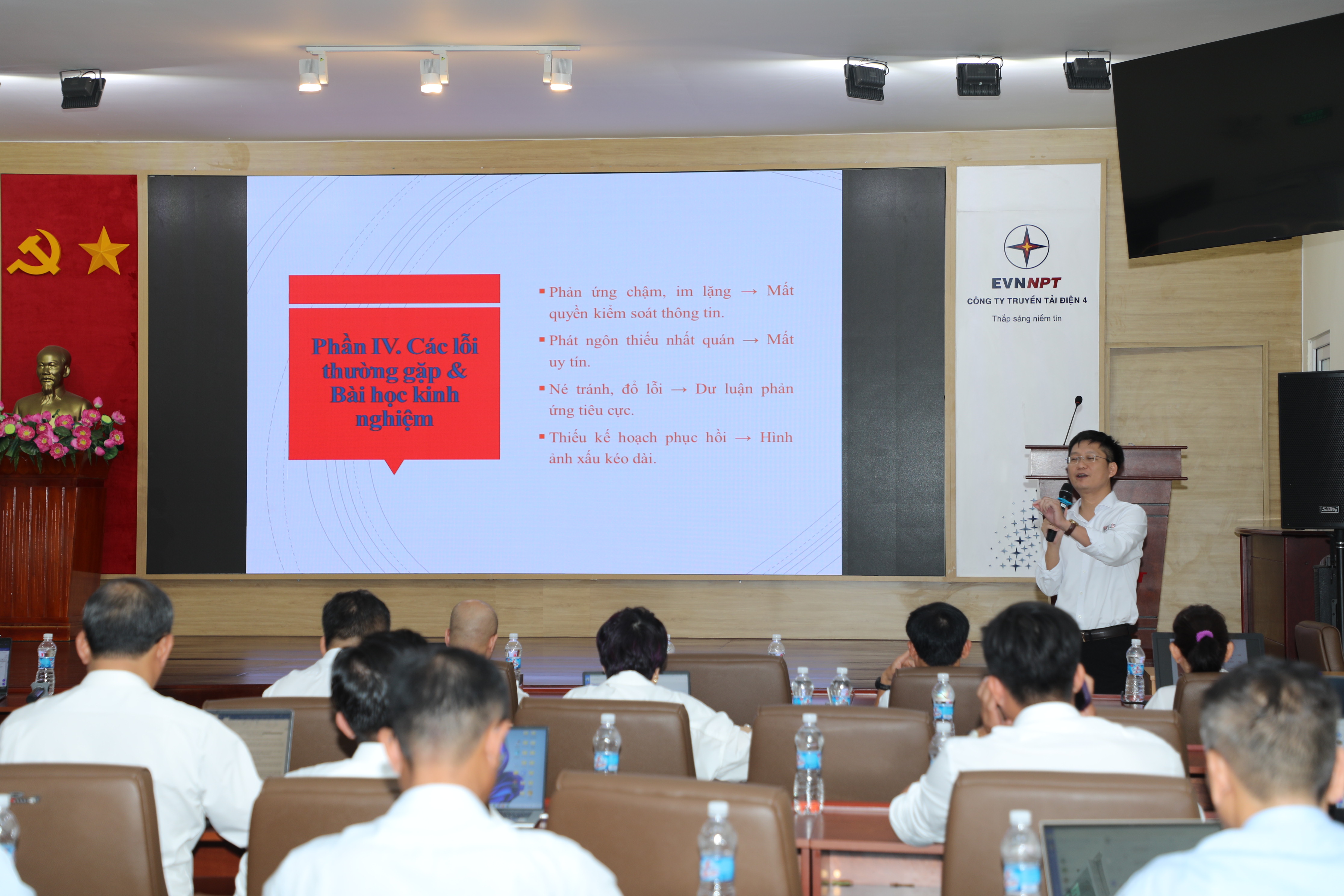 Khóa học giúp học viên hiểu rõ vai trò của truyền thông trong ngành điện không chỉ là kênh truyền tải thông tin mà còn phải là “hệ miễn dịch” của ngành trước tình huống khủng hoảng. Các dạng khủng hoảng được phân tích cụ thể theo nguồn gốc từ trong nội bộ đơn vị và cả bên ngoài cộng đồng xã hội với tính chất vừa bất ngờ vừa tiềm ẩn nguy cơ, cùng với những đặc điểm tâm lý công chúng trong khủng hoảng.