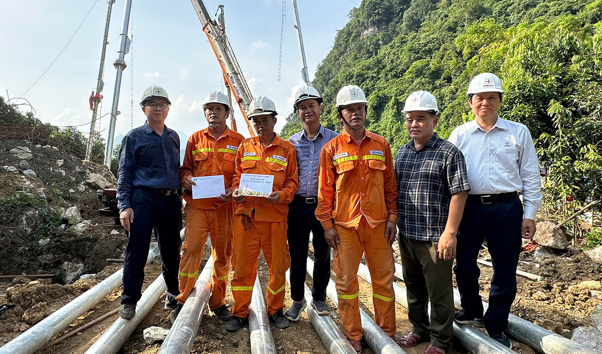 Trong chuyến công tác, đoàn đã trực tiếp đến thăm hỏi, tặng quà cho người lao động thuộc đang dựng cột vị trí 140, 110, 107 do Công ty Truyền tải điện 1; vị trí 108 do Công ty Truyền tải điện 3 thi công.