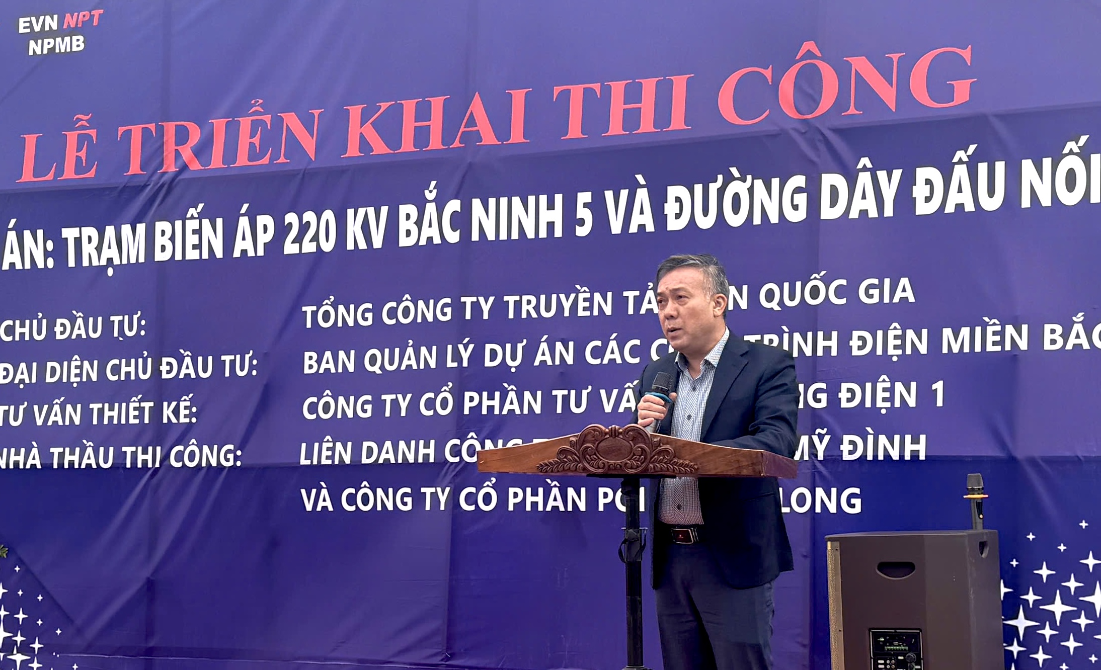 Phát biểu tại buổi lễ, ông Nguyễn Khắc Nhân - Giám đốc NPMB cho biết dự án Trạm biến áp 220 kV Bắc Ninh 5 và đường dây đấu nối là công trình trọng điểm trong quy hoạch phát triển điện lực, đã được UBND tỉnh Bắc Ninh chấp thuận chủ trương đầu tư tại Quyết định số 37/QĐ-UBND tháng 01/2025. Việc triển khai dự án có ý nghĩa quan trọng trong bối cảnh phụ tải điện trên địa bàn tỉnh Bắc Ninh duy trì tốc độ tăng trưởng trên 10%/năm, đòi hỏi hạ tầng lưới điện truyền tải phải được đầu tư đồng bộ, đi trước một bước.