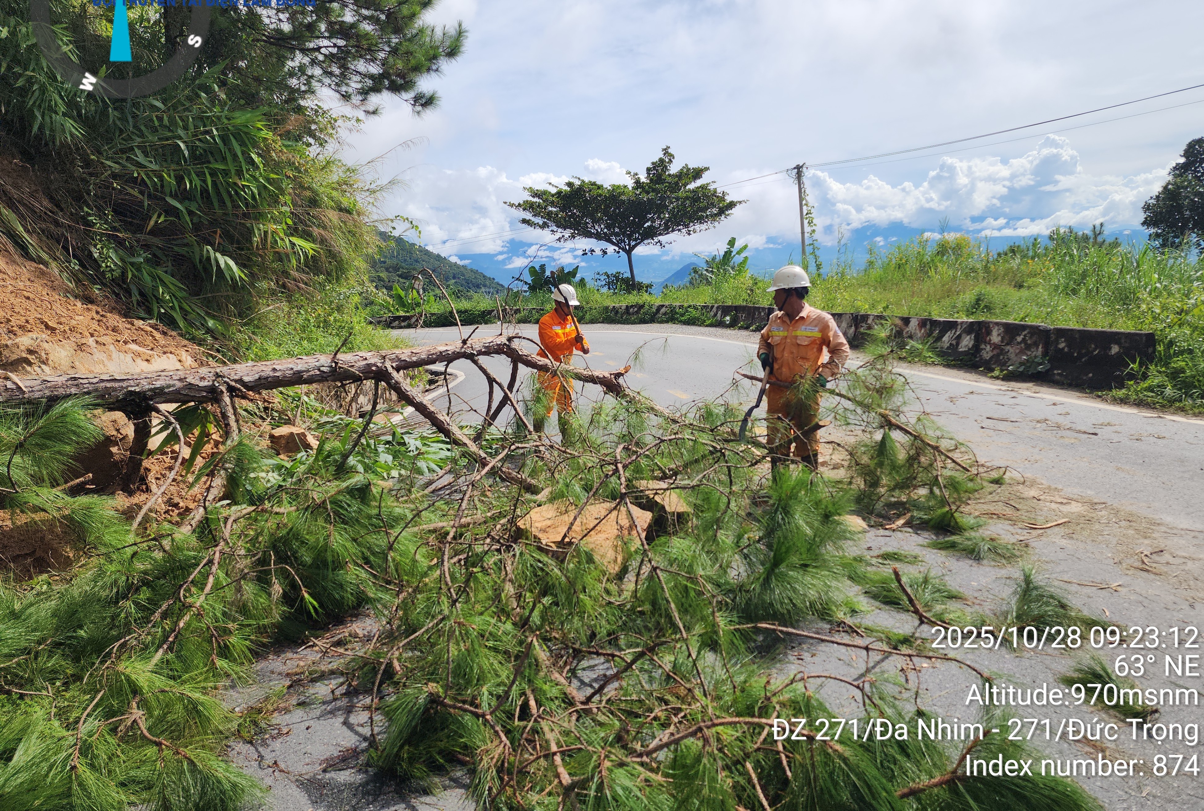 Thế nhưng, hôm ấy, hành trình công tác bỗng trở thành một trải nghiệm khó quên. Khi xe vừa men theo khúc cua ngoằn ngoèo, trước mắt chúng tôi hiện ra một cảnh tượng hỗn độn, một cây Thông cổ thụ khổng lồ bị gió mưa quật ngã, chắn gần như toàn bộ lòng đường Quốc lộ 27. Đất đá sạt lở đổ tràn, giao thông ách tắc, từng dòng xe xếp hàng dài, và trong ánh mắt những người tài xế, hành khách – tôi thấy rõ sự lo lắng và bất lực.